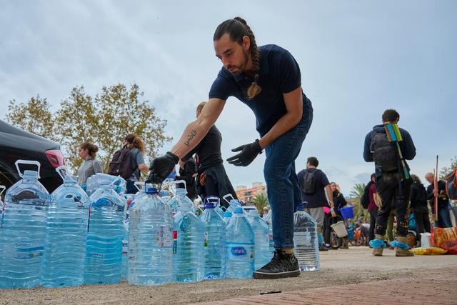 11月3日,志愿者在西班牙巴伦西亚市区分发物资。新华社发(巴勃罗·莫拉诺摄)