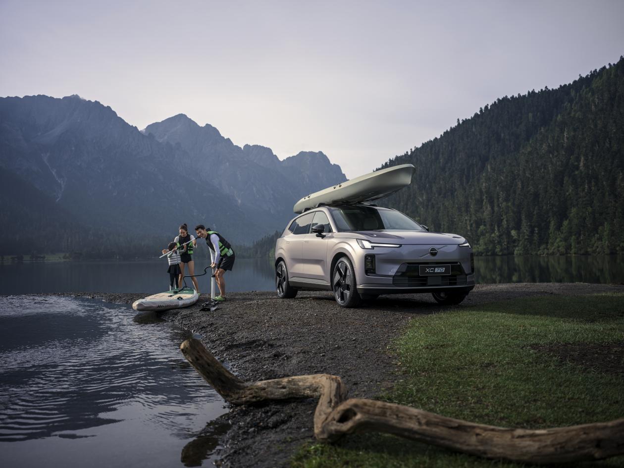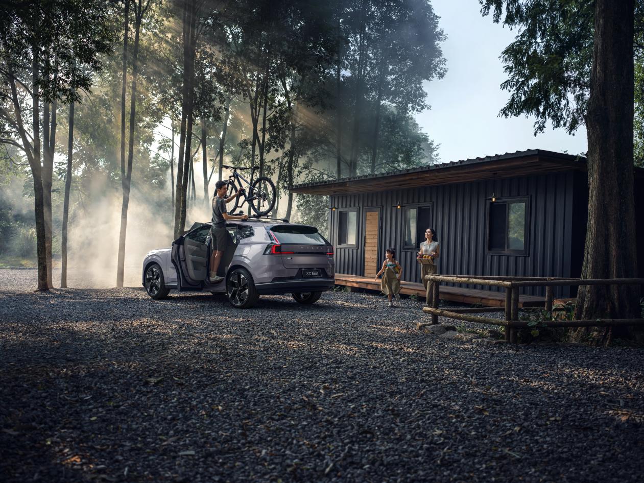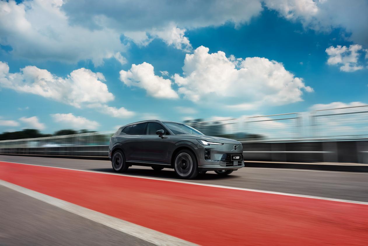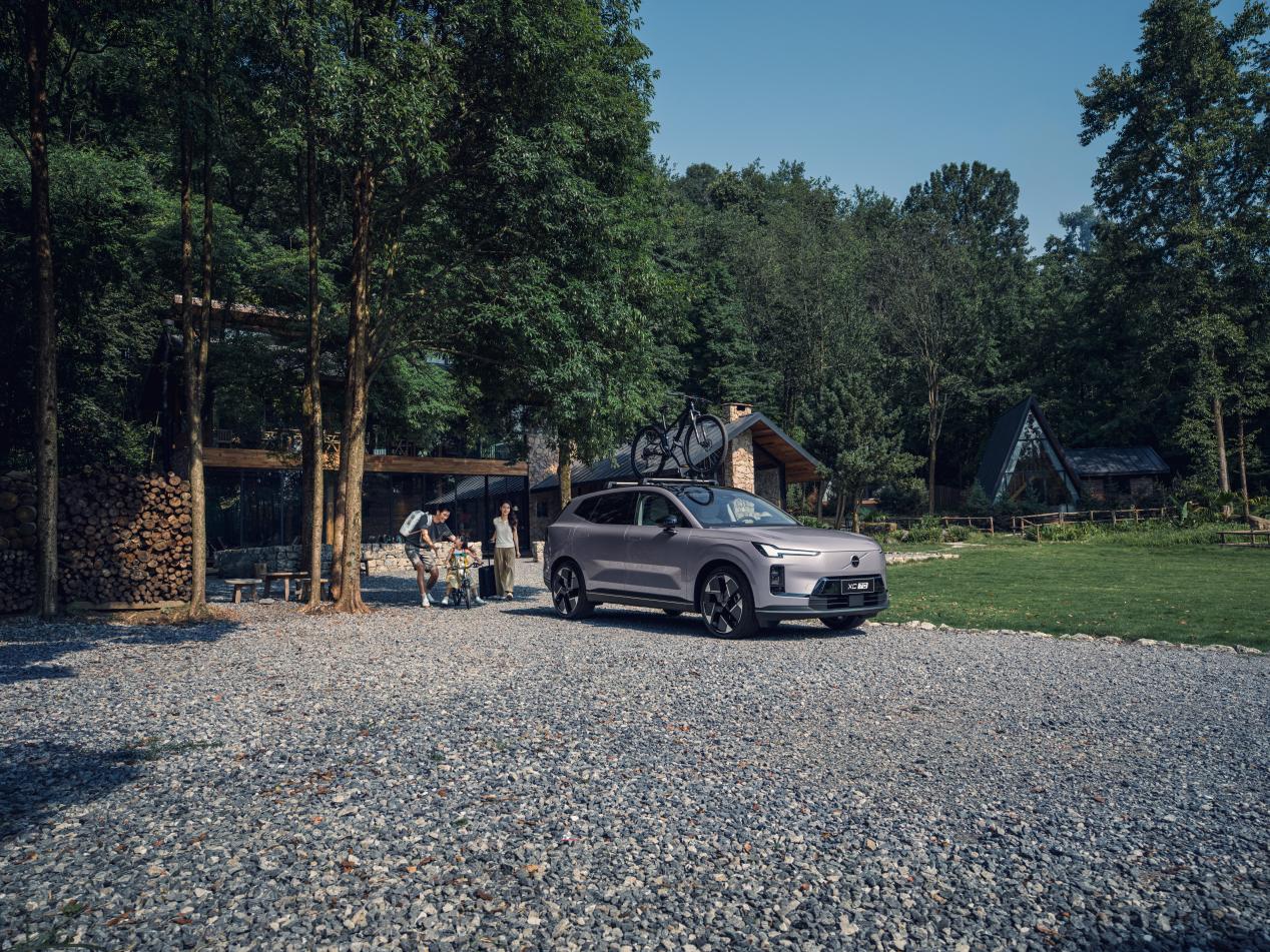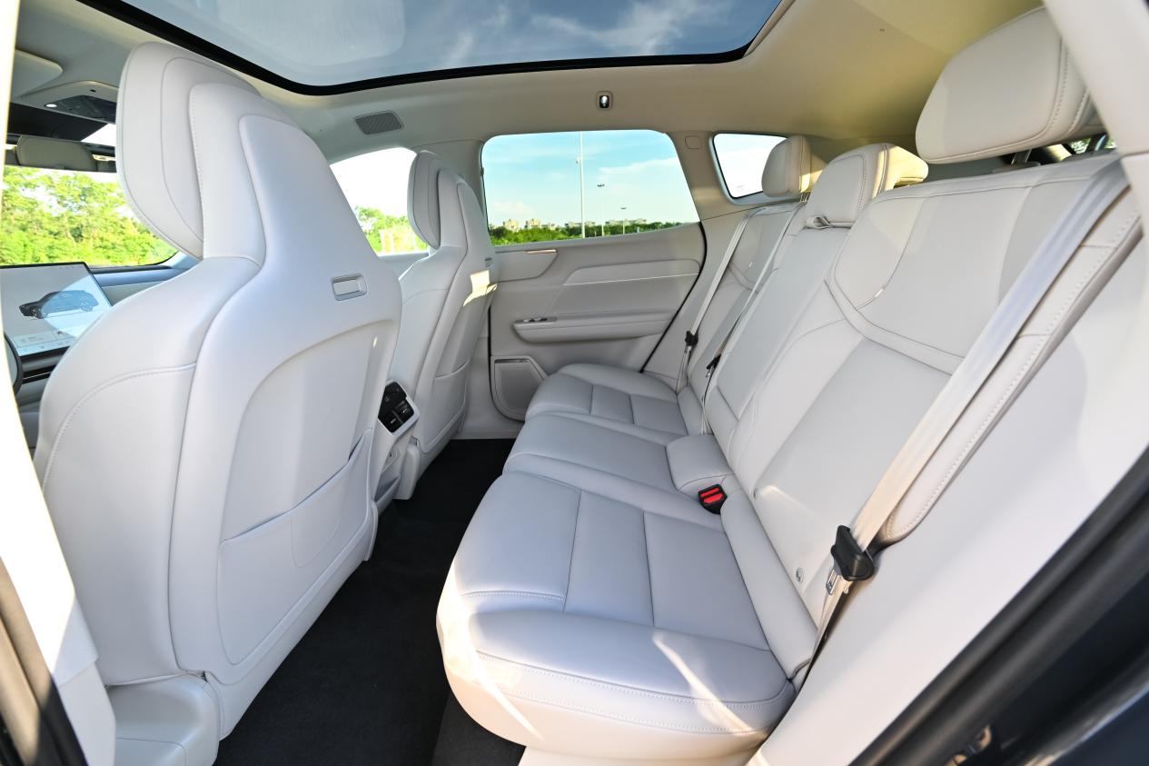 封闭式的盾形前脸一脉传承自当家的纯电旗舰SUV车型EX90,电感很强,线条勾勒出简洁清晰的几何轮廓,开阔平直的线条,加之用上了隐藏式门把手设计,以凸显它追求低能耗高效益的超混车型身份。