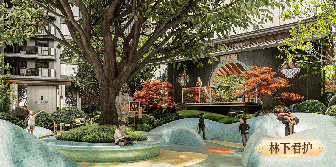 在这里,你每天穿梭于“嬉鱼逐浪”、“榕荫聚趣”、“古木蕴秀”的诗情画意中,归家就像是在游历一幅山水画卷。