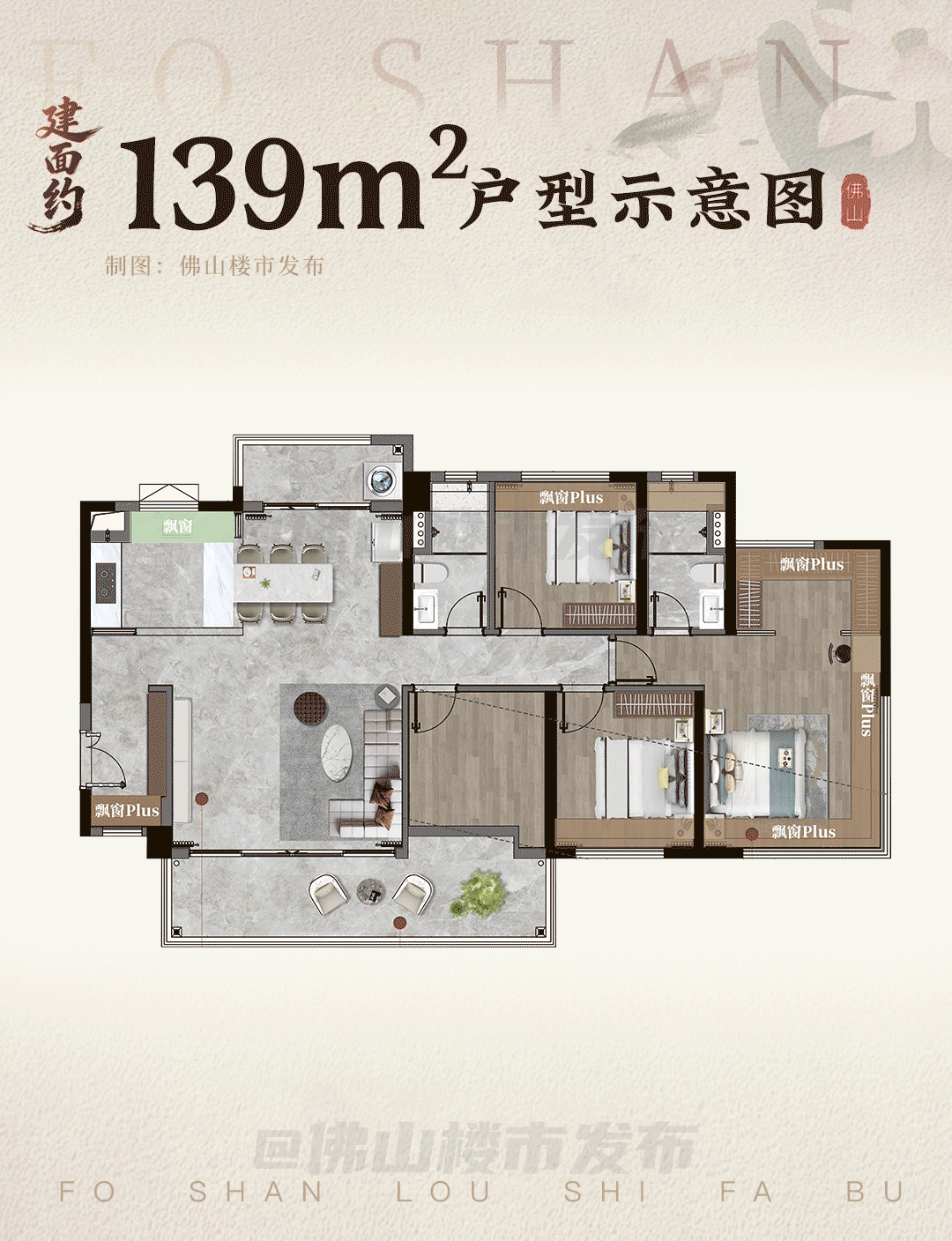如果喜欢更奢阔的空间,建面约117/139平王牌四房会是你更好的选择。