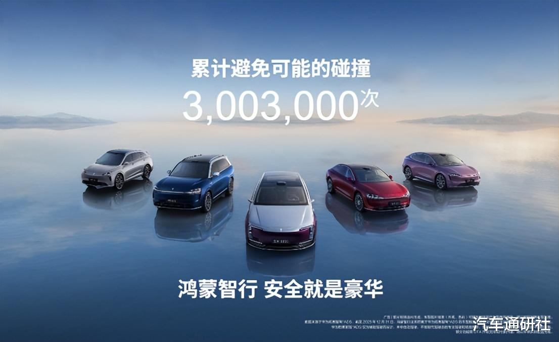 以辅助驾驶为例,根据华为乾崑智驾ADS的数据,截至2025年12月31日,鸿蒙智行全系搭载于华为乾崑智驾ADS的车型触发主动安全功能并累计避免了3003000次可能的碰撞,完美诠释了“安全才是最大的豪华”。