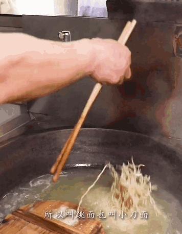 不同于苏州细细长长的碱面,锅盖面的面条是“跳面”,也称“小刀面”。