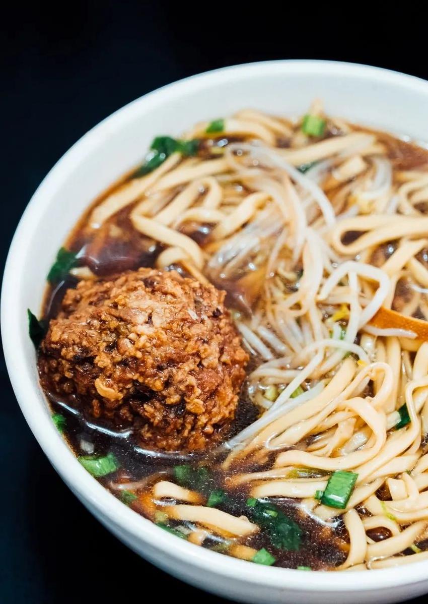 张伟点了一碗加了狮子头的锅盖面,他品了第一口便不禁赞叹:“这面条的口感和家里的真不一样。”