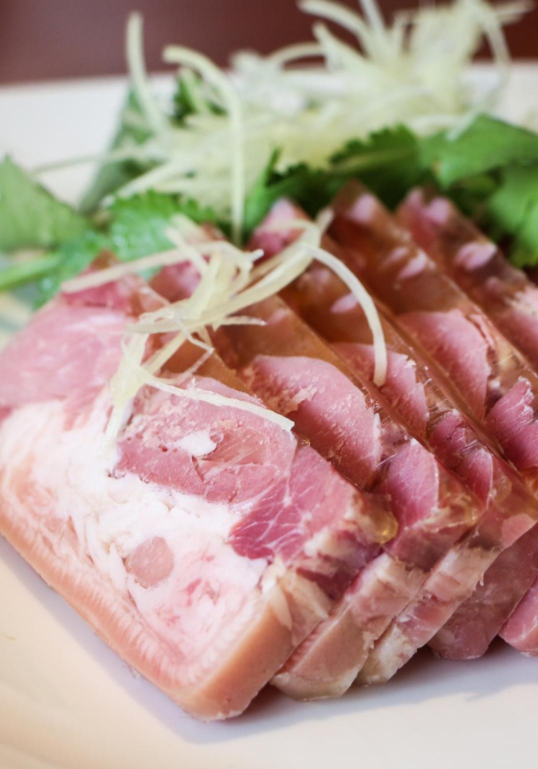 蒸好的猪蹄去骨后,腌制切片,经由几道工序,终于上桌。