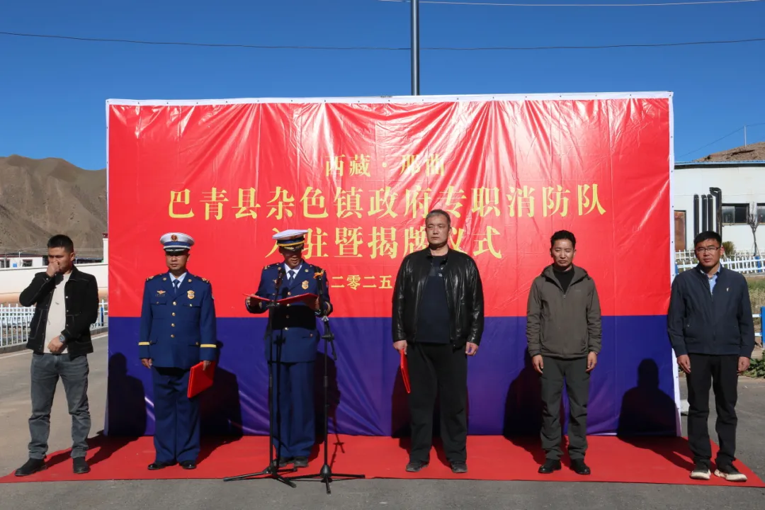 2025年10月13日,那曲市巴青县隆重举行杂色镇政府专职消防队入驻暨揭牌仪式。那曲市消防救援支队副支队长赵晨辉,巴青县政府副县长陈二峰,县应急管理局、消防救援大队主要负责人,杂色镇党委政府领导班子成员,以及辖区企事业单位代表、群众代表等齐聚现场,共同见证这一重要时刻。