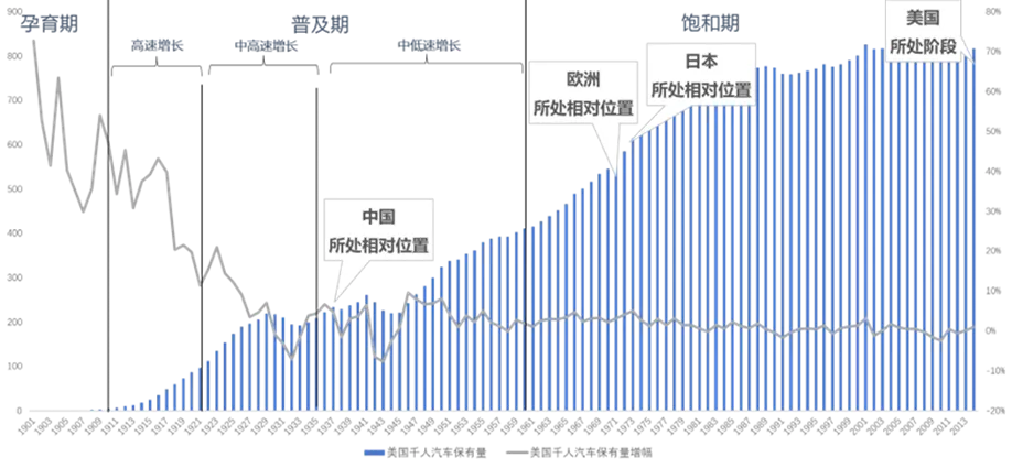 美国、欧洲、日本等海外核心汽车市场已经进入饱和期。以美国为例,其千人汽车保有量达到868辆,近五年千人保有量年均增速不足1%。汽车交易已经由新购转向流通与换购,2023年美国二手车交易与新购车的比例为2.3:1。