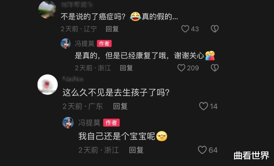 当谈到患癌的原因时,冯提莫坦诚地表示这是因为长期遭受辱骂、造谣,精神上承受了巨大的压力被气出来的病。在网络这个虚拟的世界里她虽然拥有众多粉丝的喜爱和支持,但也不可避免地遭受到了一些恶意的攻击和诋毁。长期处于这样负面的舆论环境中,对她的身心健康造成了极大的伤害。此外她还针对一些网络上流传的不实传言进行了辟谣,比如隐婚生子等谣言。