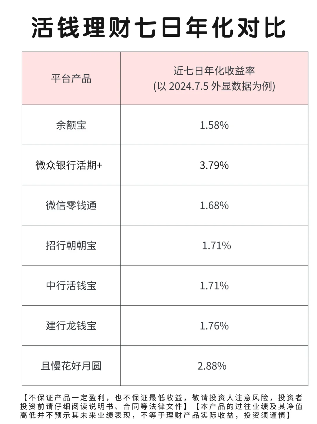 ● 近七日年化收益率基本在2.6%-3%左右,碰巧有新产品在刚发布的前几天的话更高(比如最近几天到了3.8%~算是阶段性福利了),也就是存十万,👍按2.8%的近七日年化收益率算,一年就有2800元,每个月可以多买一支口红,我觉得真的很香!