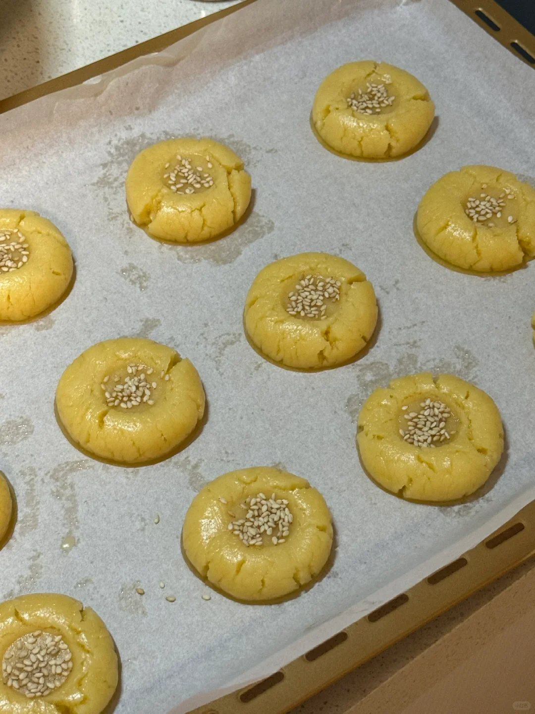 做桃酥简直停不下来,每一步都超解压,尤其是按压芝麻那刻,成就感爆棚!酥脆小零食,甜度适中,配茶绝了!你也试试看?