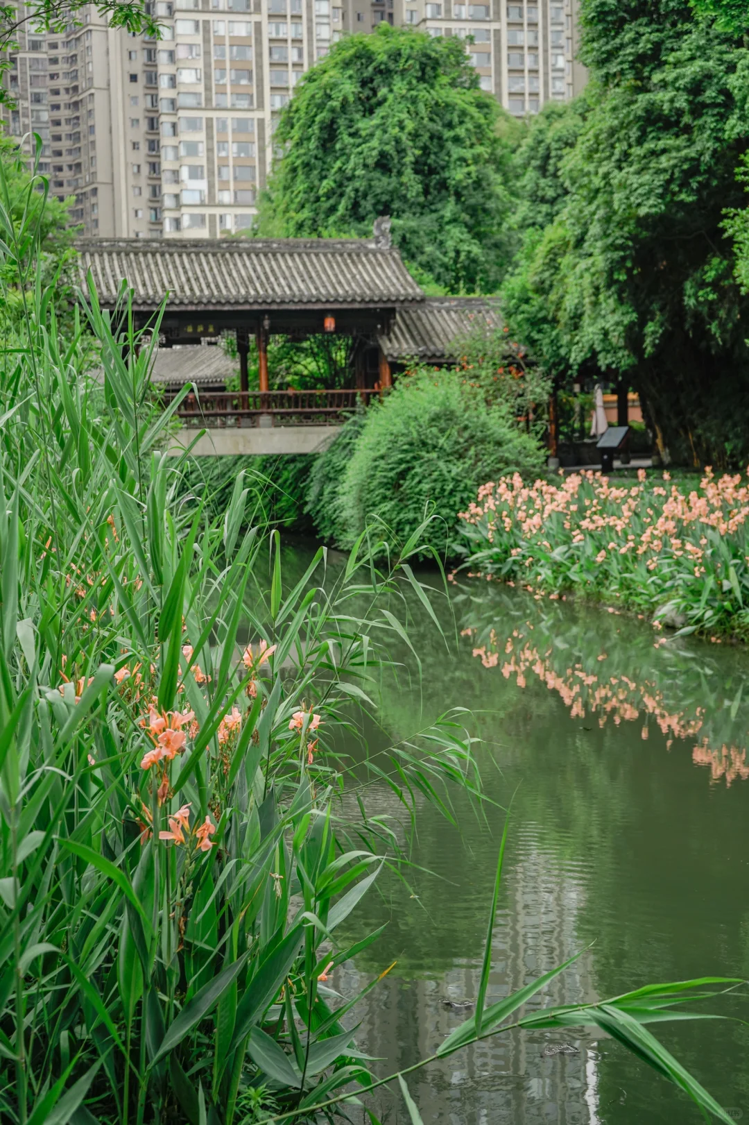这里有亭台楼谢、绿树红花、肖家河从中穿过