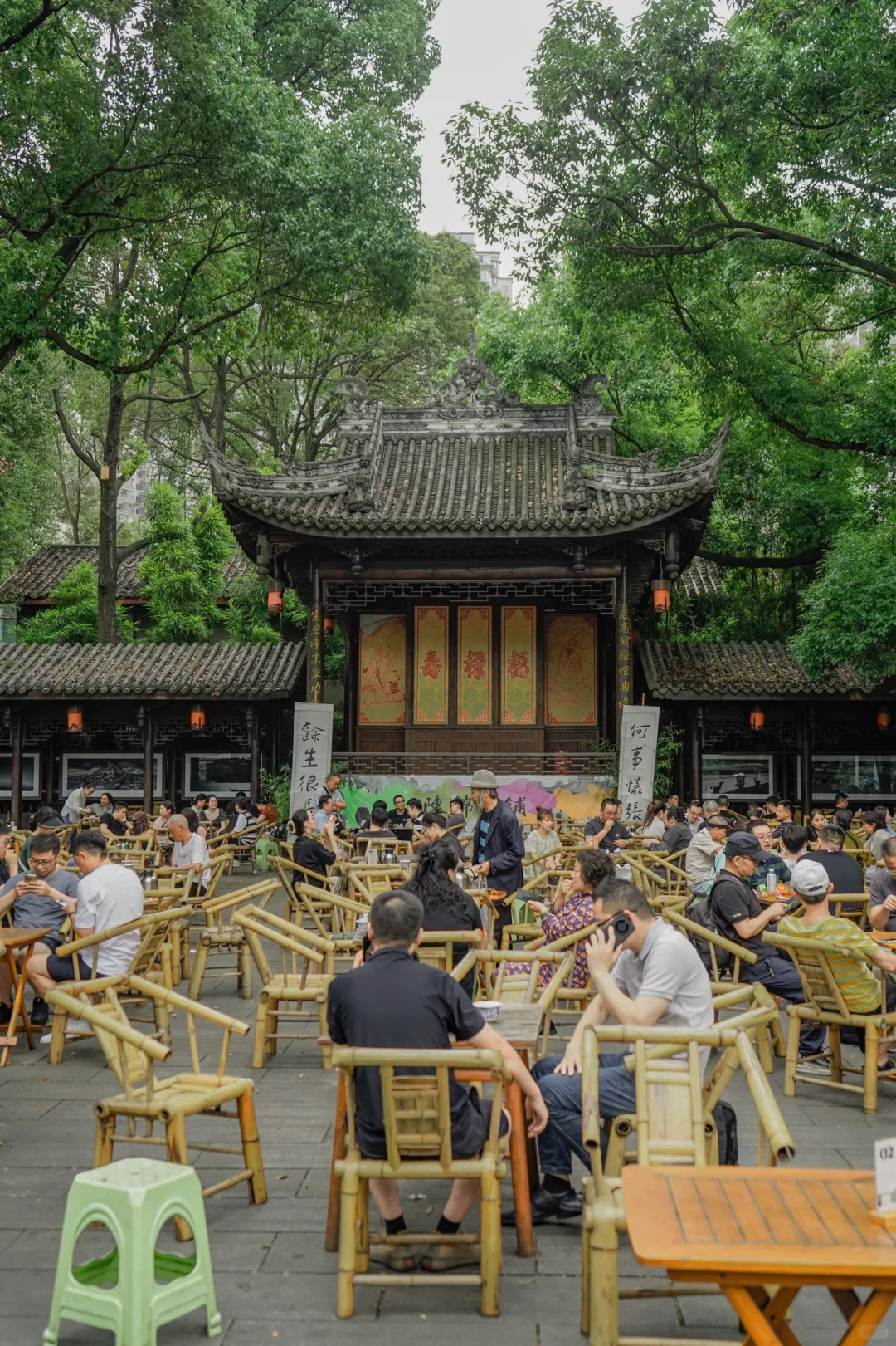 1️⃣陈锦茶铺:网上很火的陈锦茶铺就在水街上,我也是最近才知道。逛累了喝一碗茶吃一份小吃,在绿荫遮盖的坝坝上悠闲得躺一下午