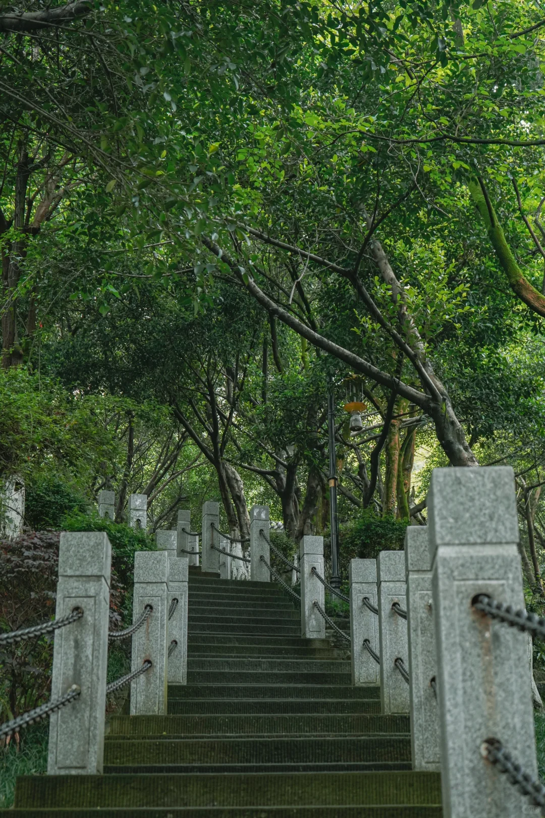1️⃣从南门下到公园的近百阶石梯,很有纵深感