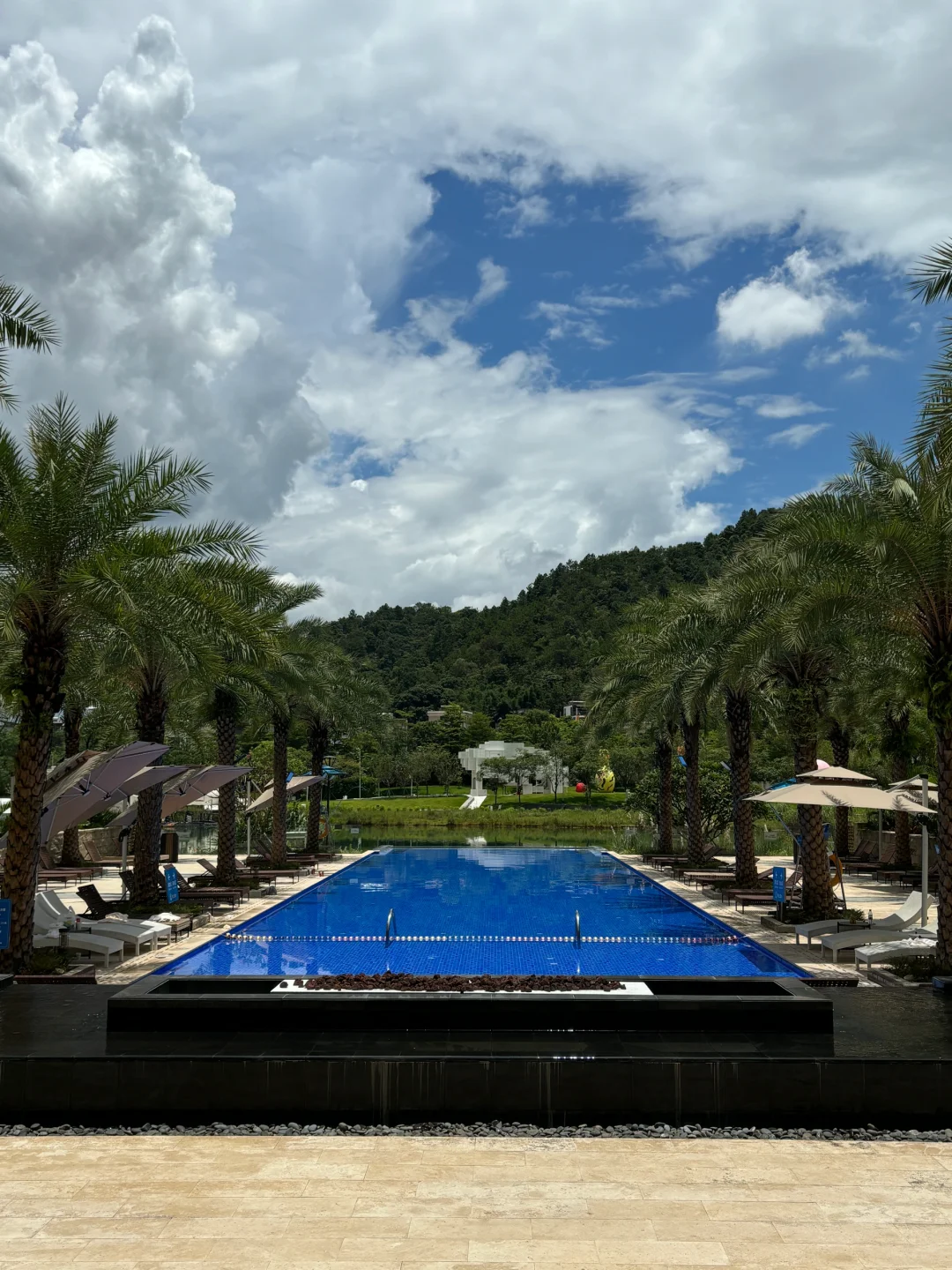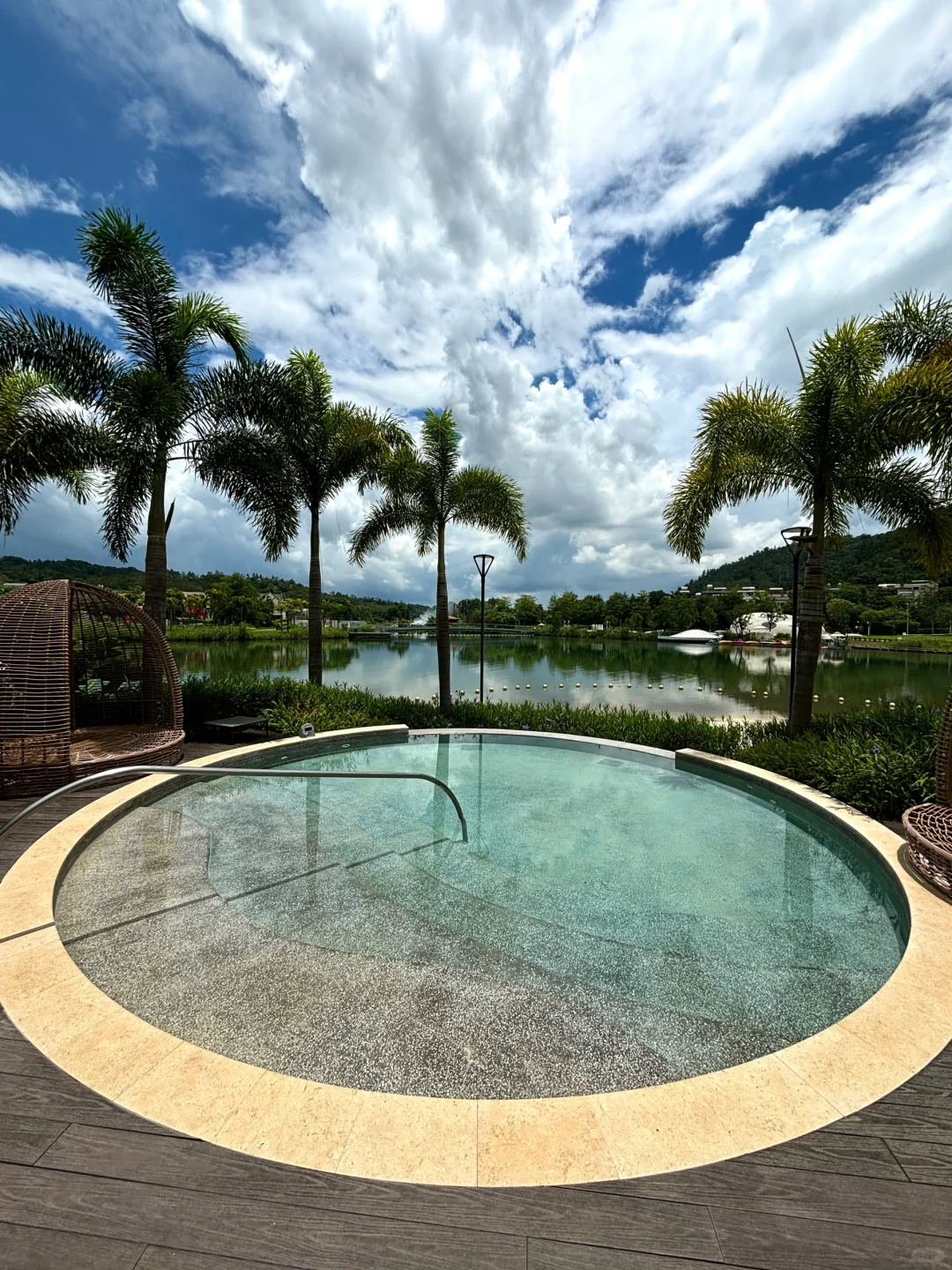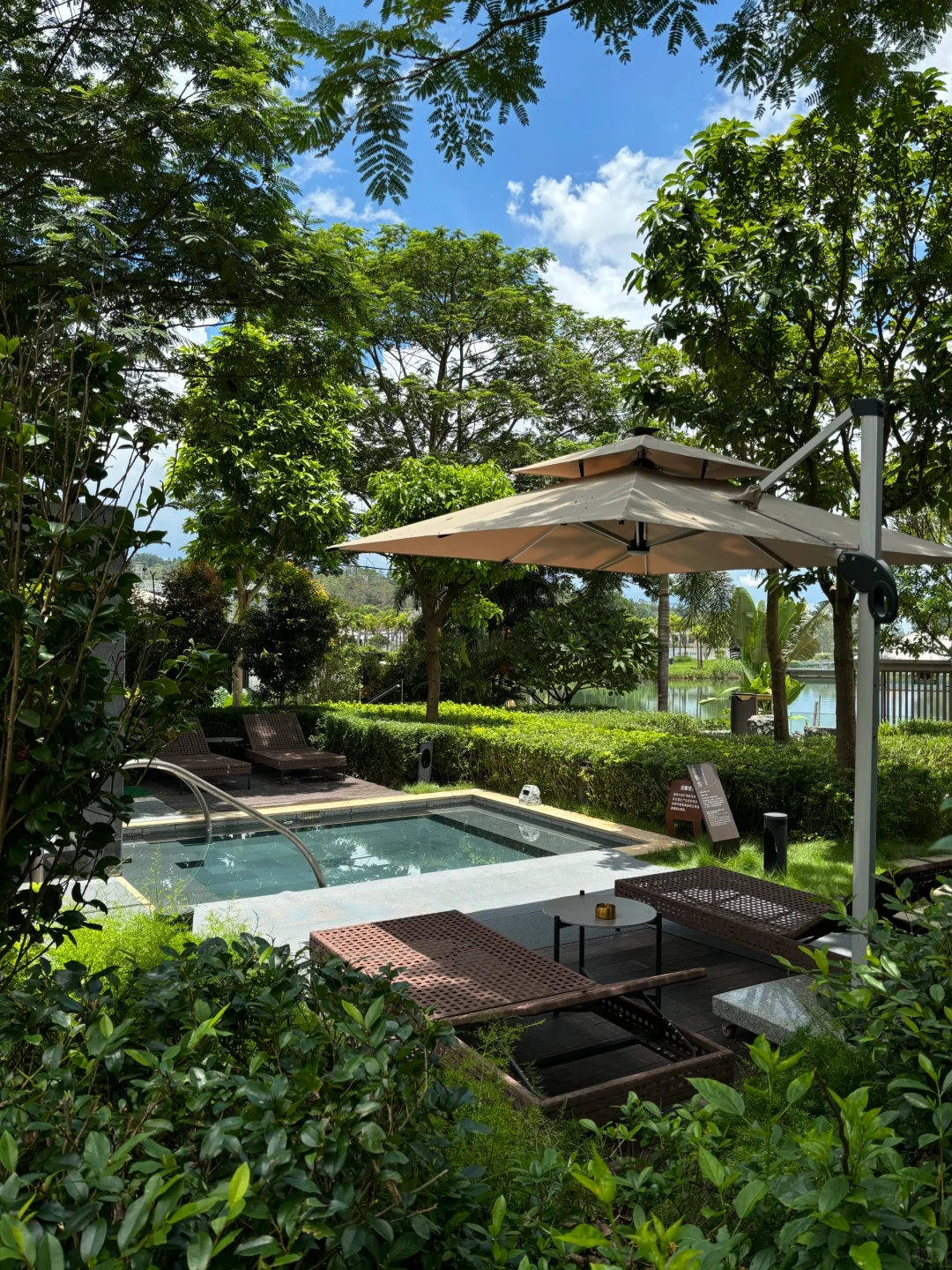 拥有无边泳池和10+个温泉♨️,景色很好