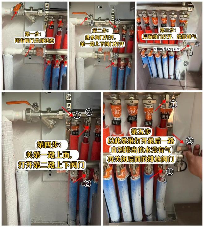 通常一个采暖周期需要做1~2次排气处理,方法也比较简单,具体可以参考下图。