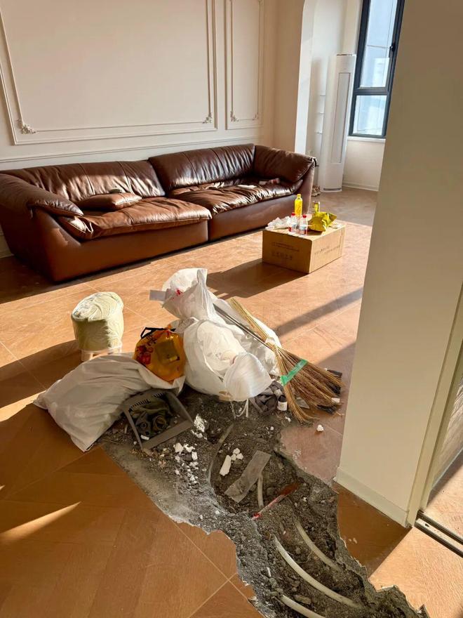 网友@小陀螺:悬着的心终于死了,前两天还在纠结地暖要不要拆,今天看到邻居家拆开地面后的情况,立马决定不要了。