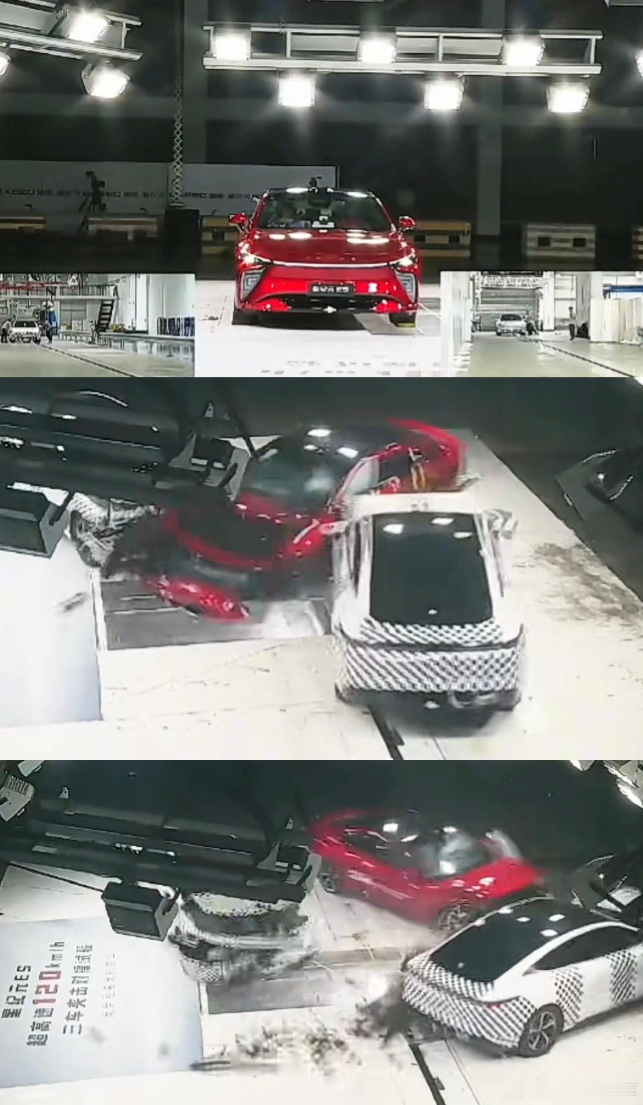 120km/h 超高速三车夹击对撞试验,