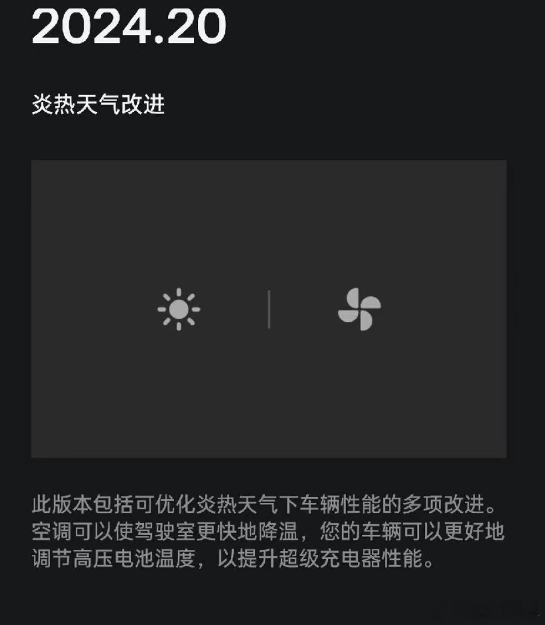 这次特斯拉 2024.20.9 软件系统,用户感知比较强的应该是这两项,高温体验