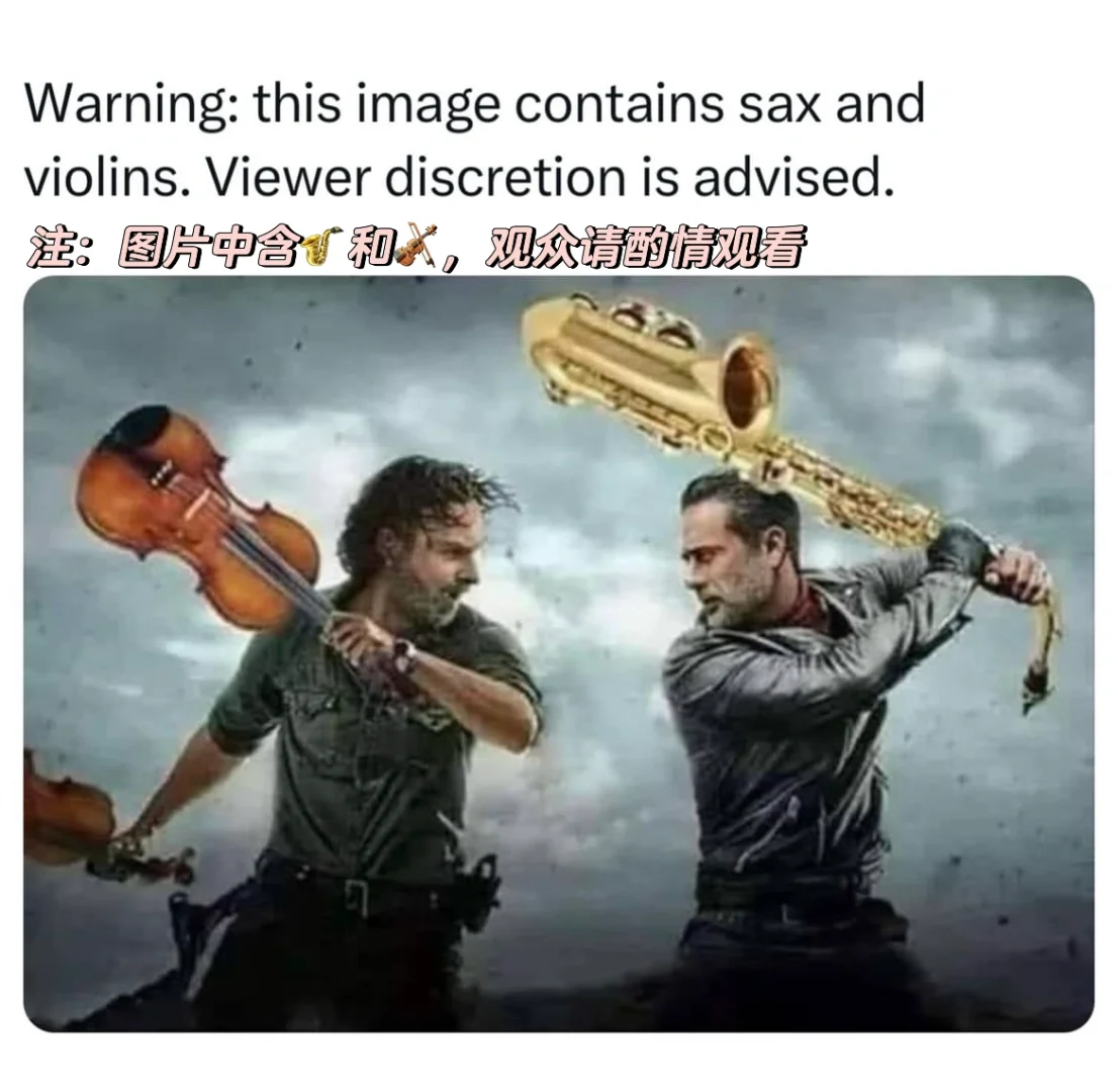 3)sax and violins音似 “sex and violences”。用看剧集前出现的注意事项来做梗;