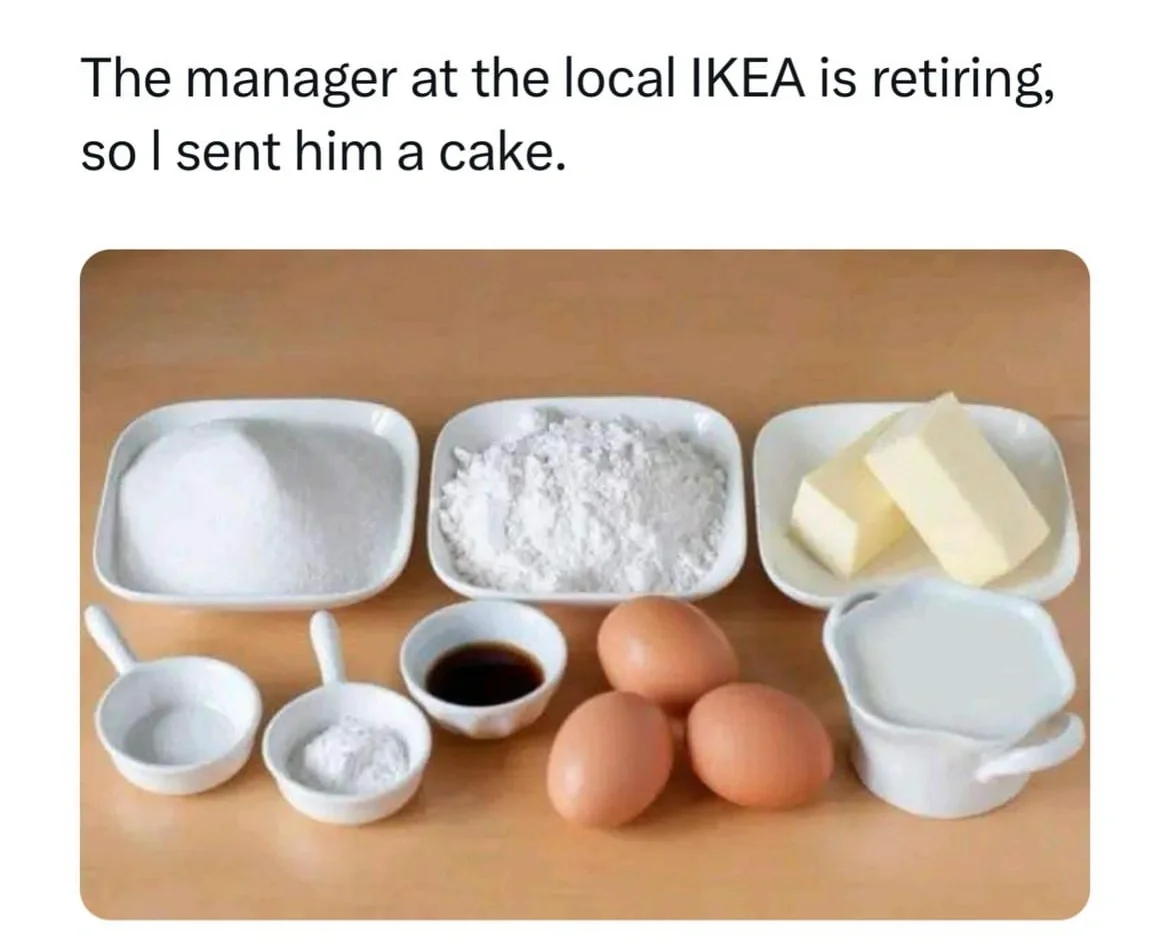 图中只有制作蛋糕的原材料,是因为宜家的产品通常买回去后需自行安装,因此,我也需要经理自行“组装好/拼好”这个蛋糕;