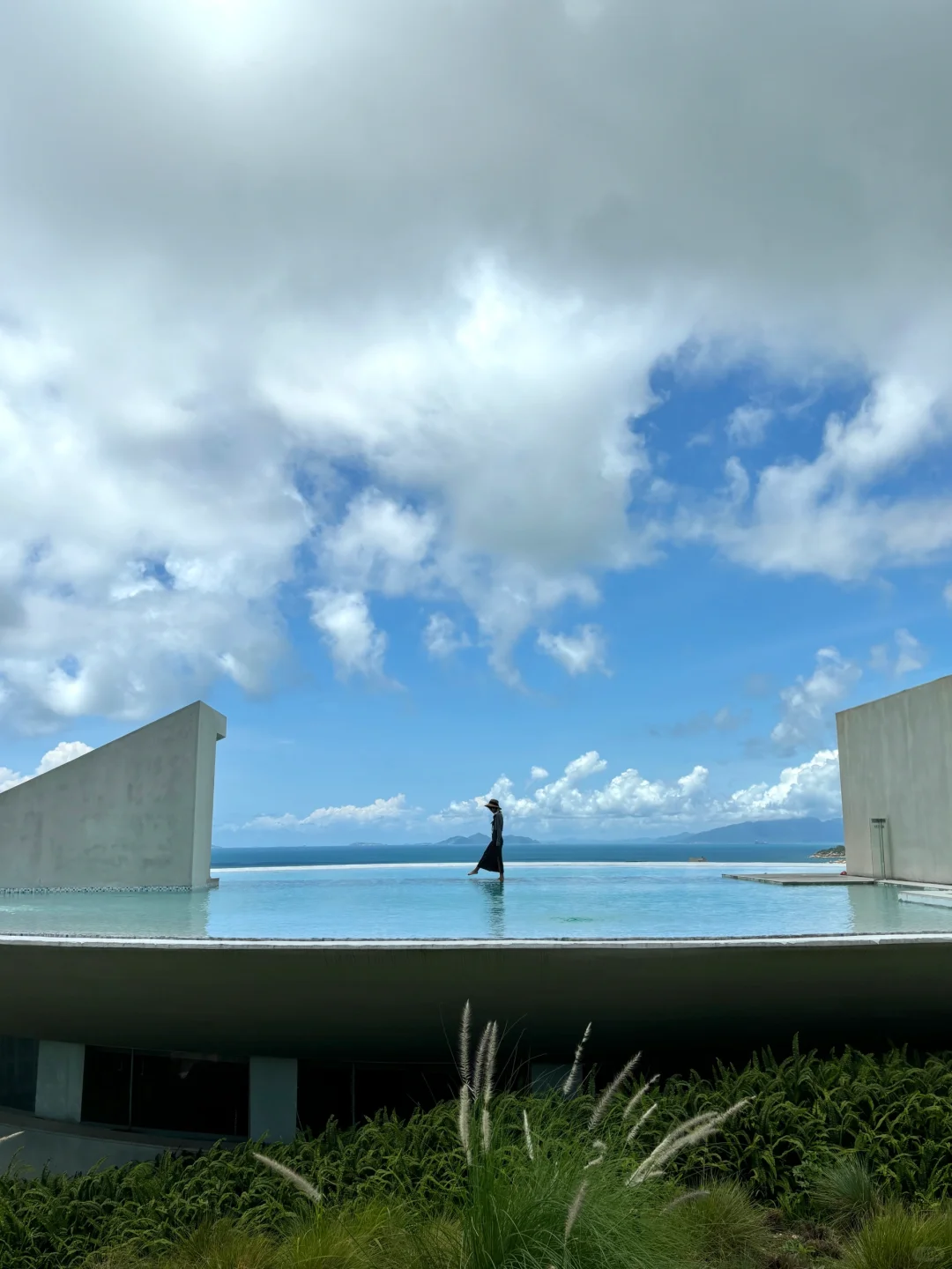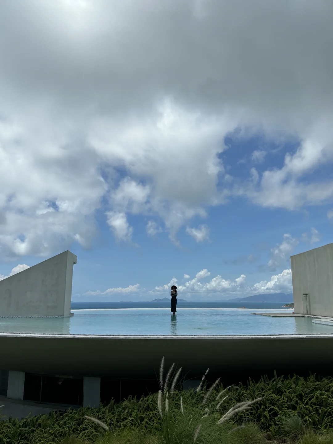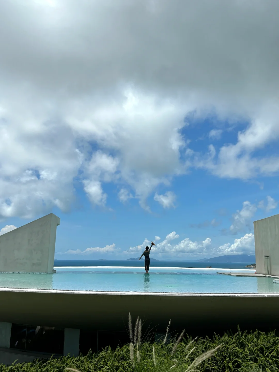不单单是一个普通的无边泳池,因为是在山顶,可以俯瞰双月湾远海,视野很开阔~望着大海,泡在山上的泳池,人生不过3万天😂活在当下