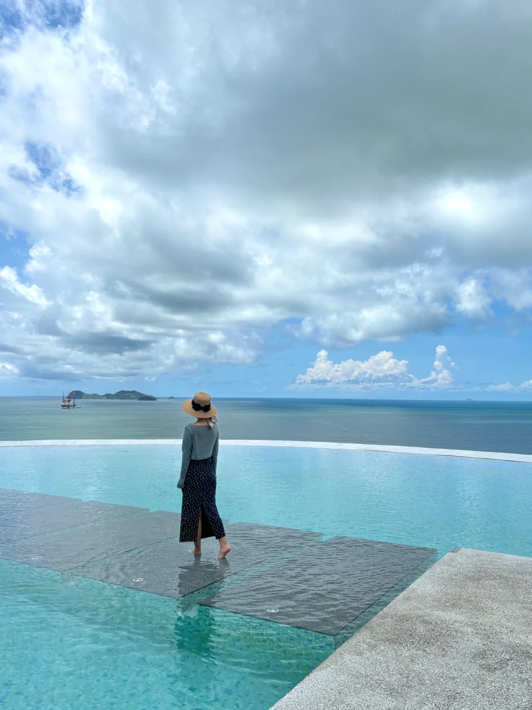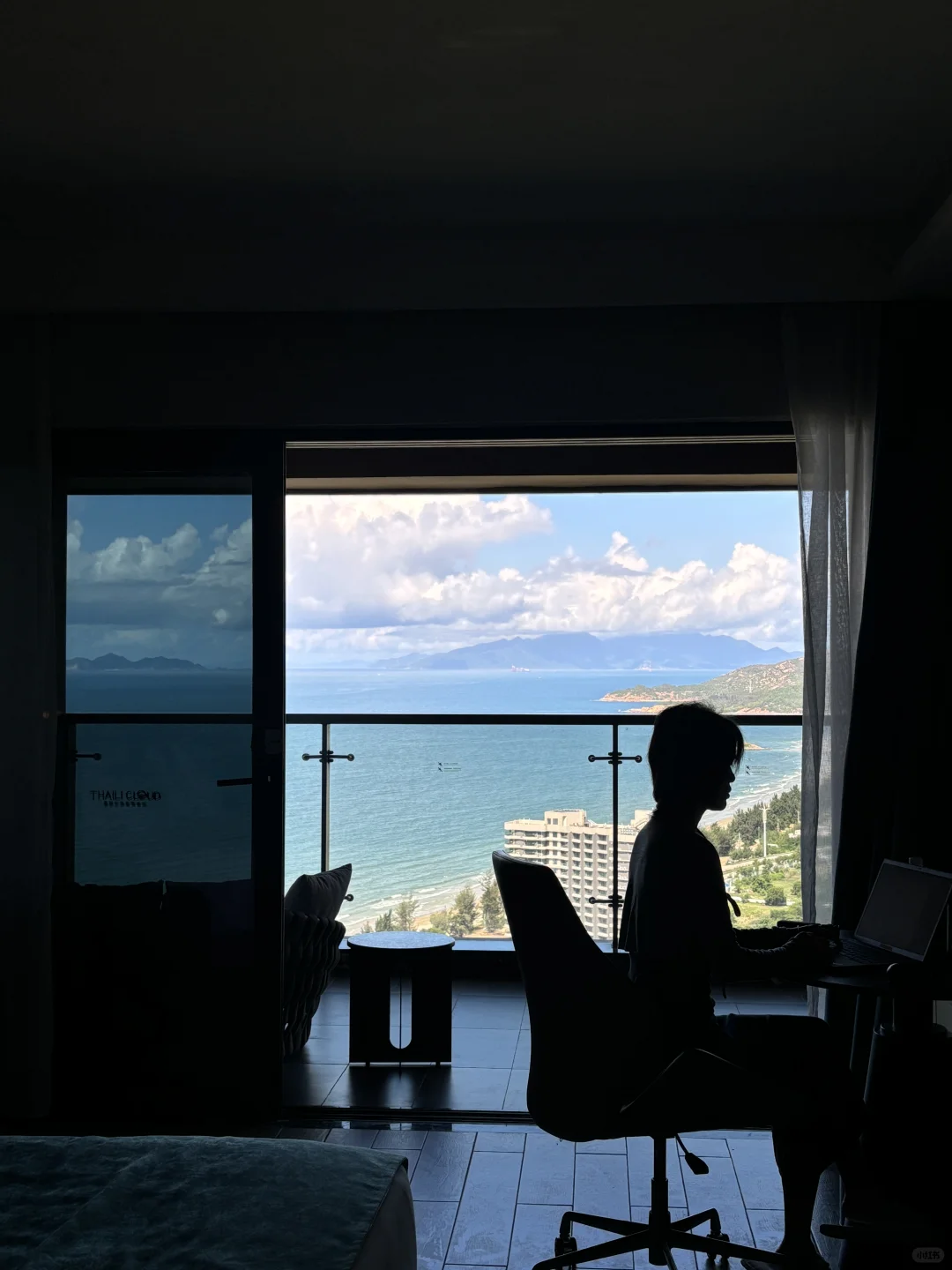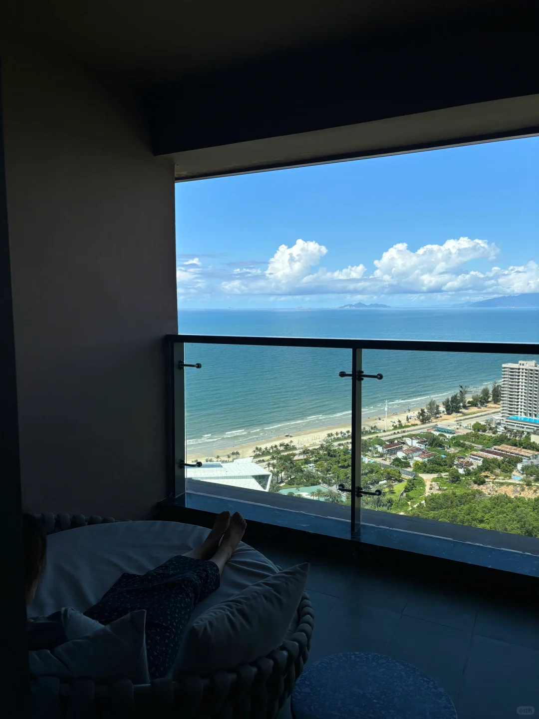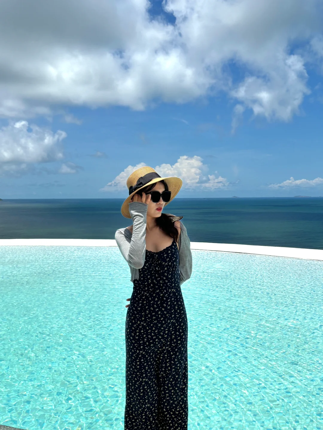 不单单是一个普通的无边泳池,因为是在山顶,可以俯瞰双月湾远海,视野很开阔~望着大海,泡在山上的泳池,人生不过3万天😂活在当下