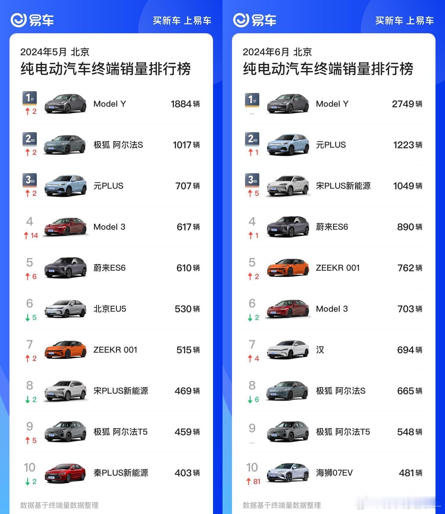 看了下北京5-6月份纯电车型销量榜单,