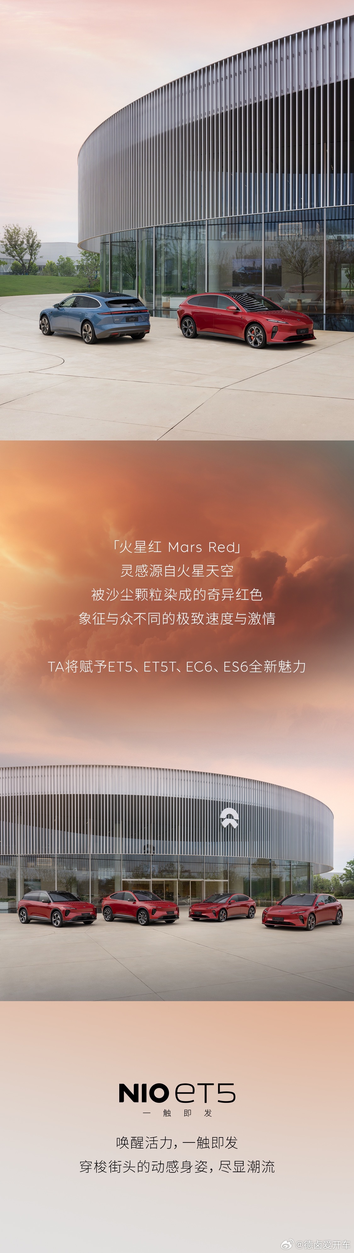 蔚来四款车型上新「火星红」配色,免费选装。#汽场全开##蔚来#