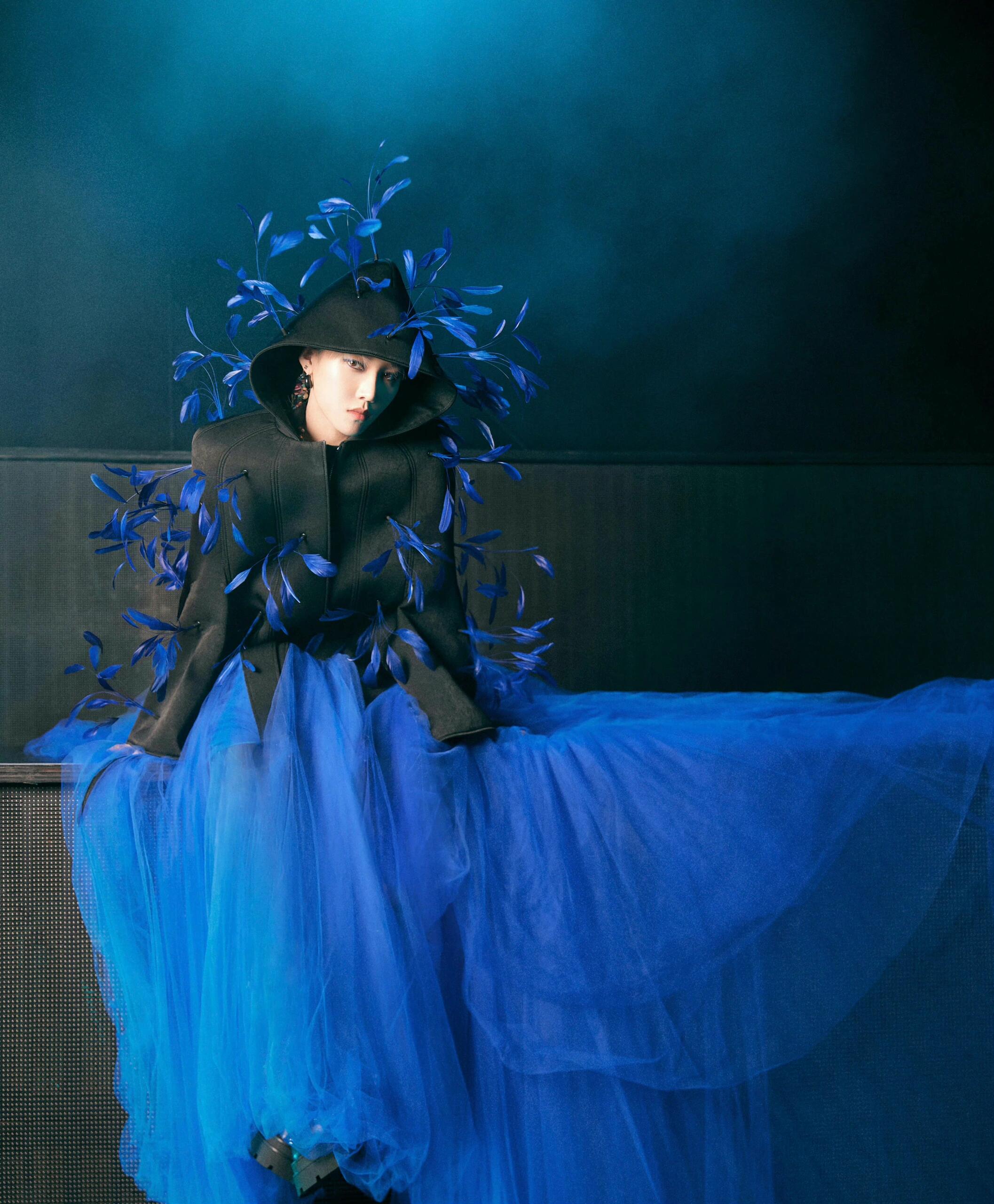 刘雨昕,她演绎了两套特别定制礼服:3D打印羽毛装饰斗篷纱裙;另一套渔网针织裤装,以极富创意的针织创作手法而闻名。