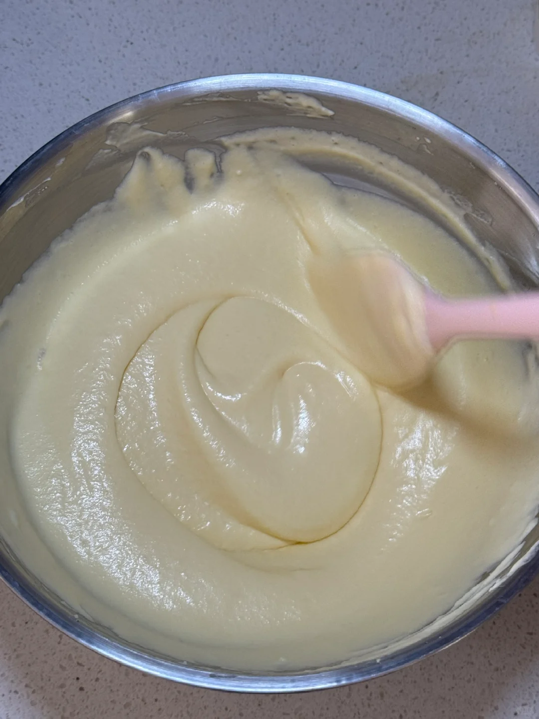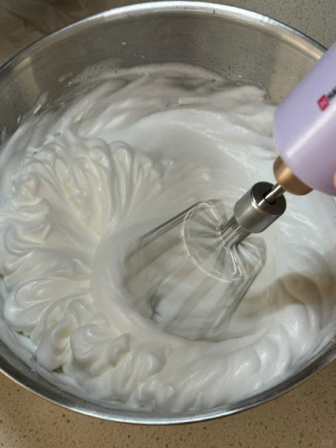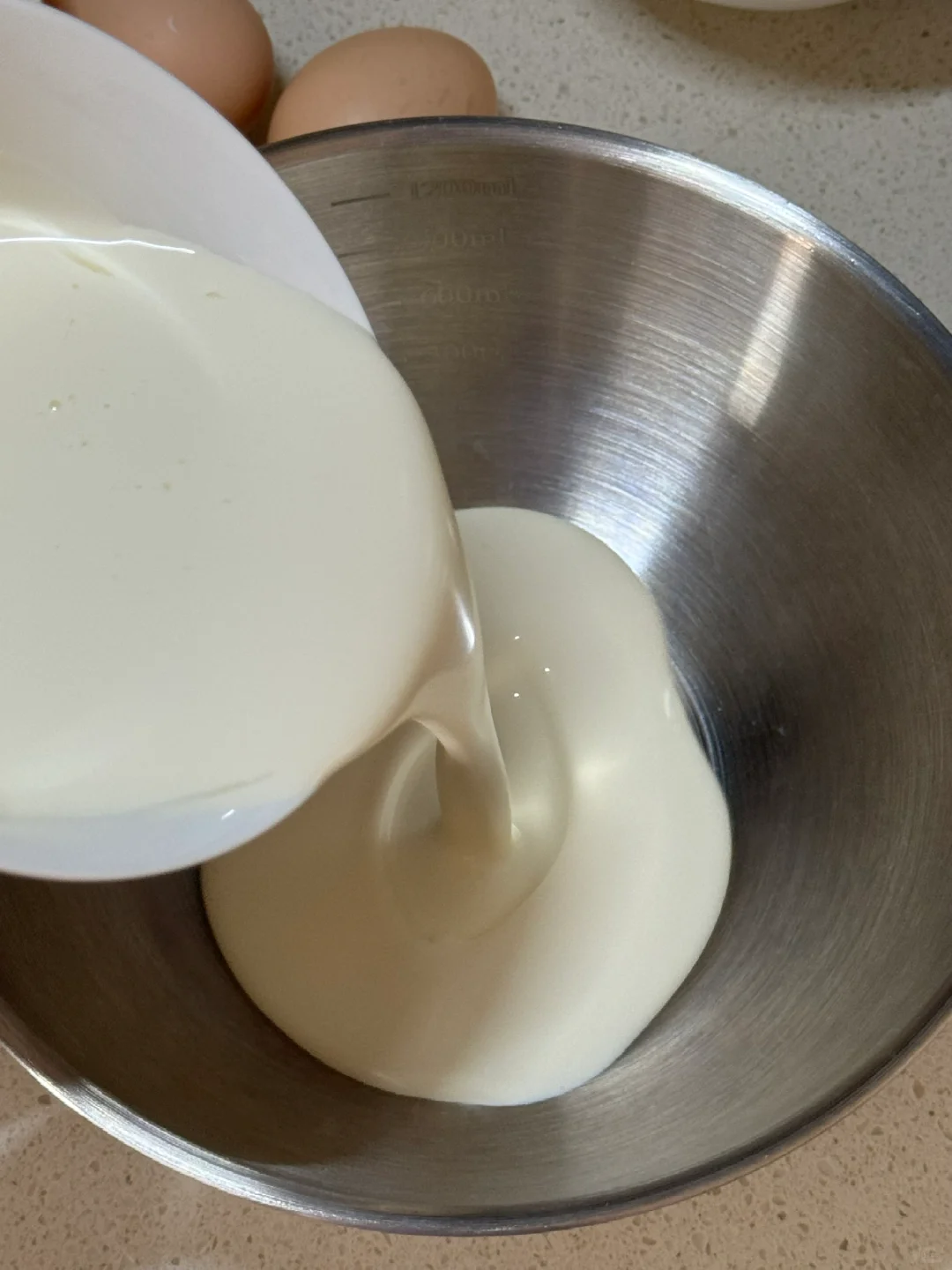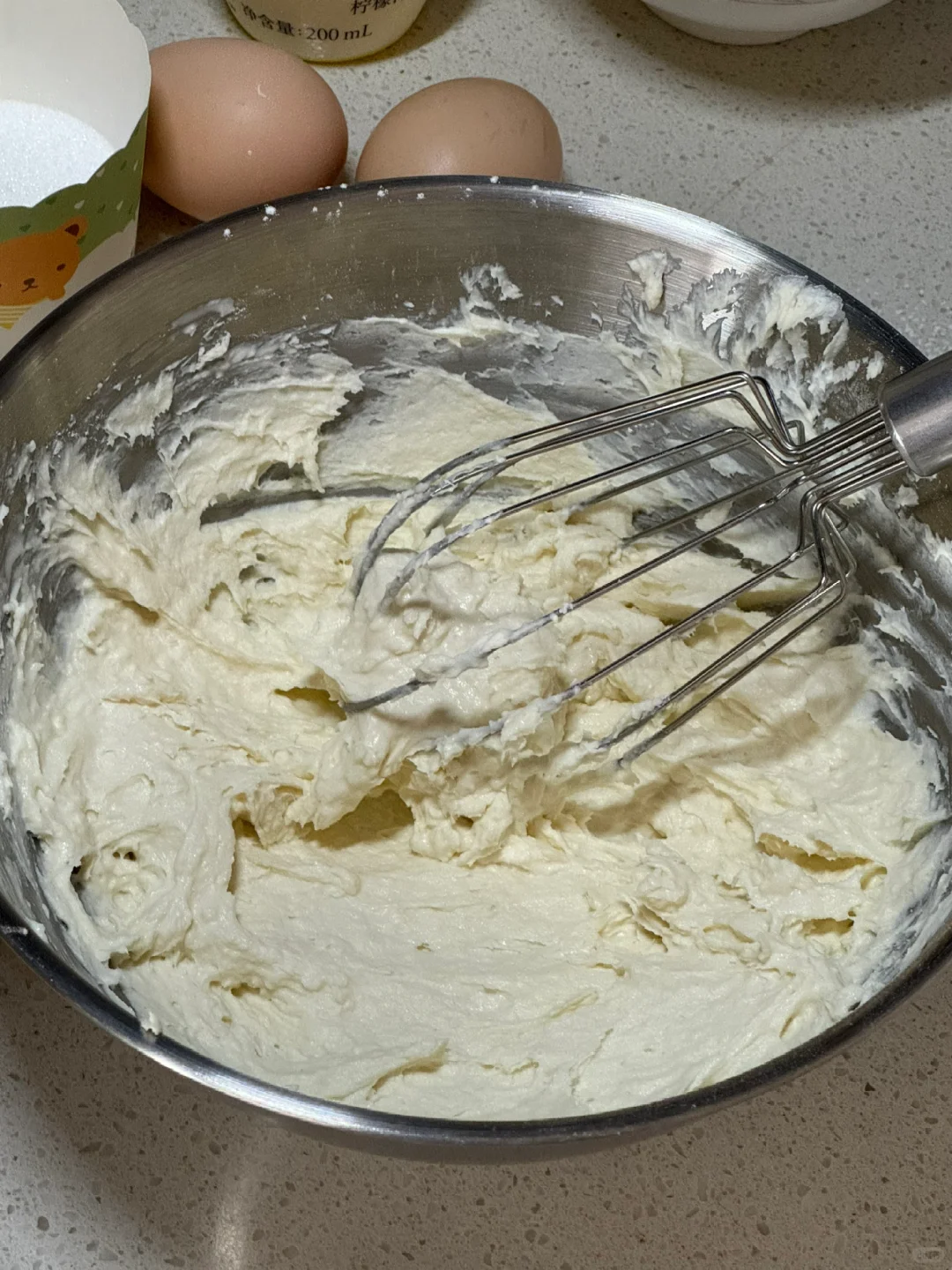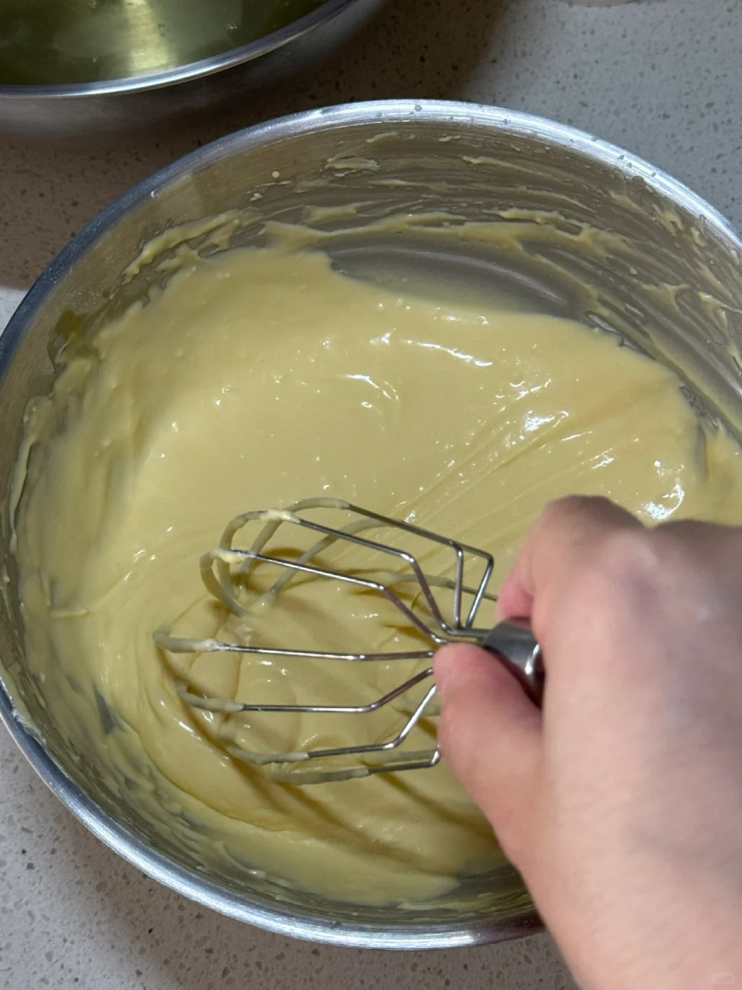 🌷食材:鸡蛋3个,淡奶油180g,低筋面粉75g,细砂糖30g,柠檬汁适量。 🌷做法:1.淡奶油、过筛后的低筋面粉,Z字型搅拌至无干粉,加入蛋黄搅拌至顺滑。 2.蛋清中加入柠檬汁、细砂糖,全程中速打发至提起有小尖角。 3.取一部分蛋白霜与蛋黄糊翻拌均匀,再倒回蛋白霜中、快速翻拌均匀,倒入模具中,轻震几下,放入预热好的烤箱,水浴法135度烘烤70分钟。 🌷出炉后晾凉,放冰箱冷藏一会儿,口感会更好,这款蛋糕比轻乳酪蛋糕更清爽,比戚风蛋糕更细腻,姐妹们快做起来吧[赞R][赞R][赞R]