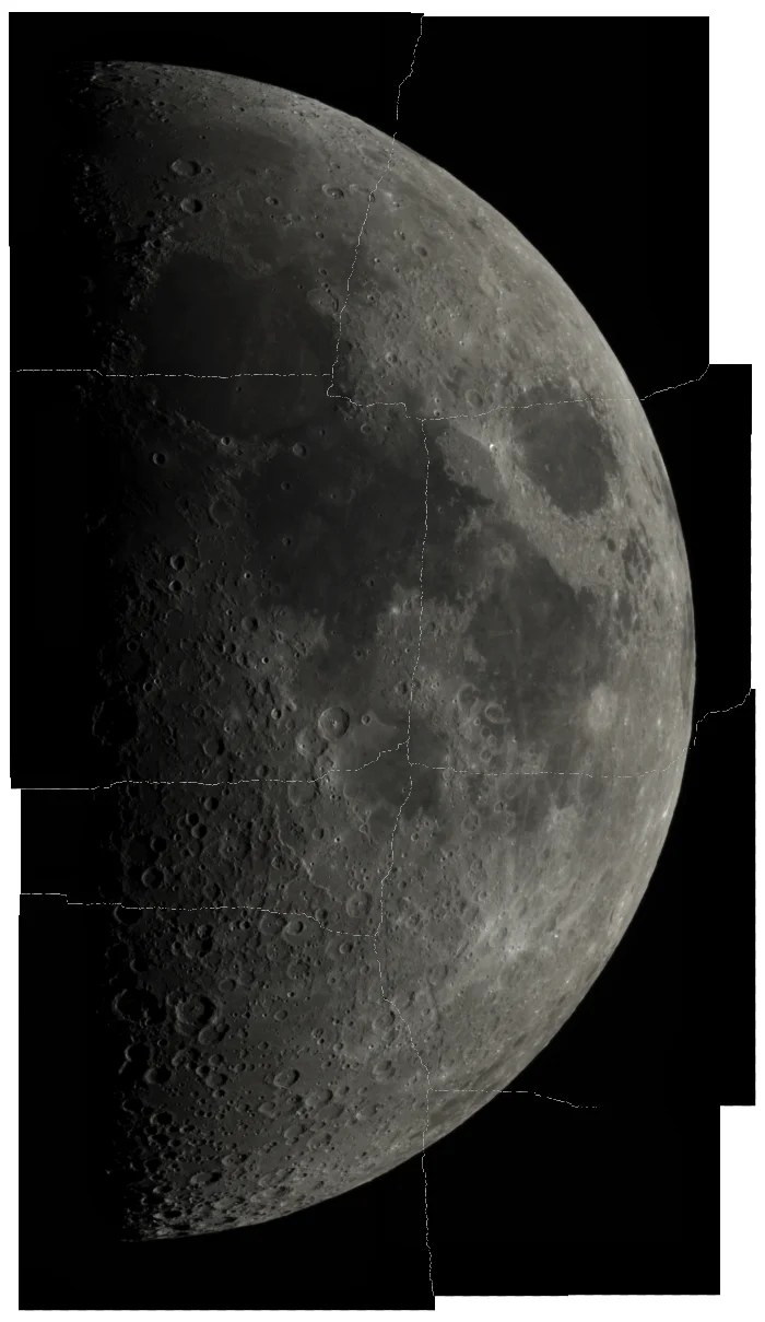 好久没拍月亮,2024.05.15,上弦月8张马赛克拼接。