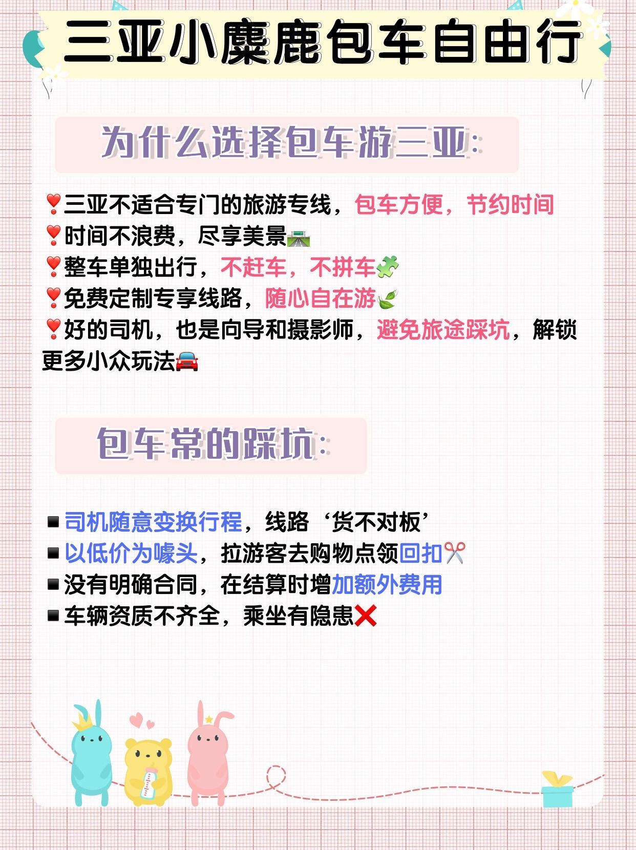 海南三亚包车攻略‼️小白一定要注意这些|20年海南三亚包车攻略‼️小白一定要注意这些||2024年了,包车游三亚的确是蕞适合的玩法✅ 省时又省力,可以轻松拥抱一段愉快的旅程 但是‼️包车可不是找辆车那么简单🤔借助以下这些,让你旅游少走弯路🎶 - 🌈为什么选择包车游三亚 ❣️三亚不适合专门的旅游专线,包车方便,节约时间 ❣️时间不浪费,尽享美景🛣 ❣️整车单独出行,不赶车,不拼车🧩 ❣️免费定制专享线路,随心自在游🍃 ❣️好的司机,也是向导和摄影师,避免旅途踩坑,解锁更多小众玩法🚘 - 🐴包车