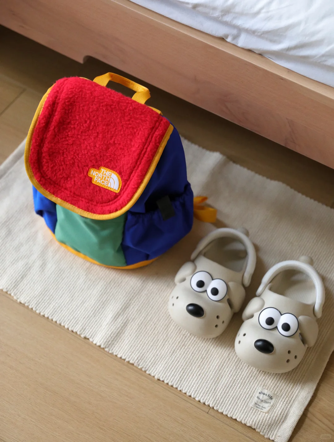 ❹姓名牌:不要买那种皮革的,好看不中用,经常会扭着也不太看得清。不过作为个人标识,好像宝宝自己能看得懂就ok,还可以换成一些小配饰哦。