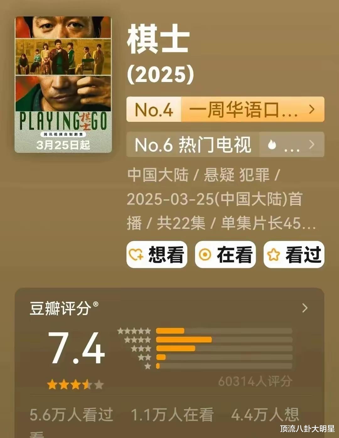 高智商“围棋隐喻犯罪”和“兄弟博弈”的高能情节和创新的核心设定吸引观众。剧中黑化逻辑不突兀、节奏快,王宝强的90秒黑化演技镜头封神了,他将崔业从窝囊到精明的转变演绎得极具层次,陈明昊饰演的崔伟则展现了警察在法与情之间的撕裂感,被观众称为“中国版汉克”。