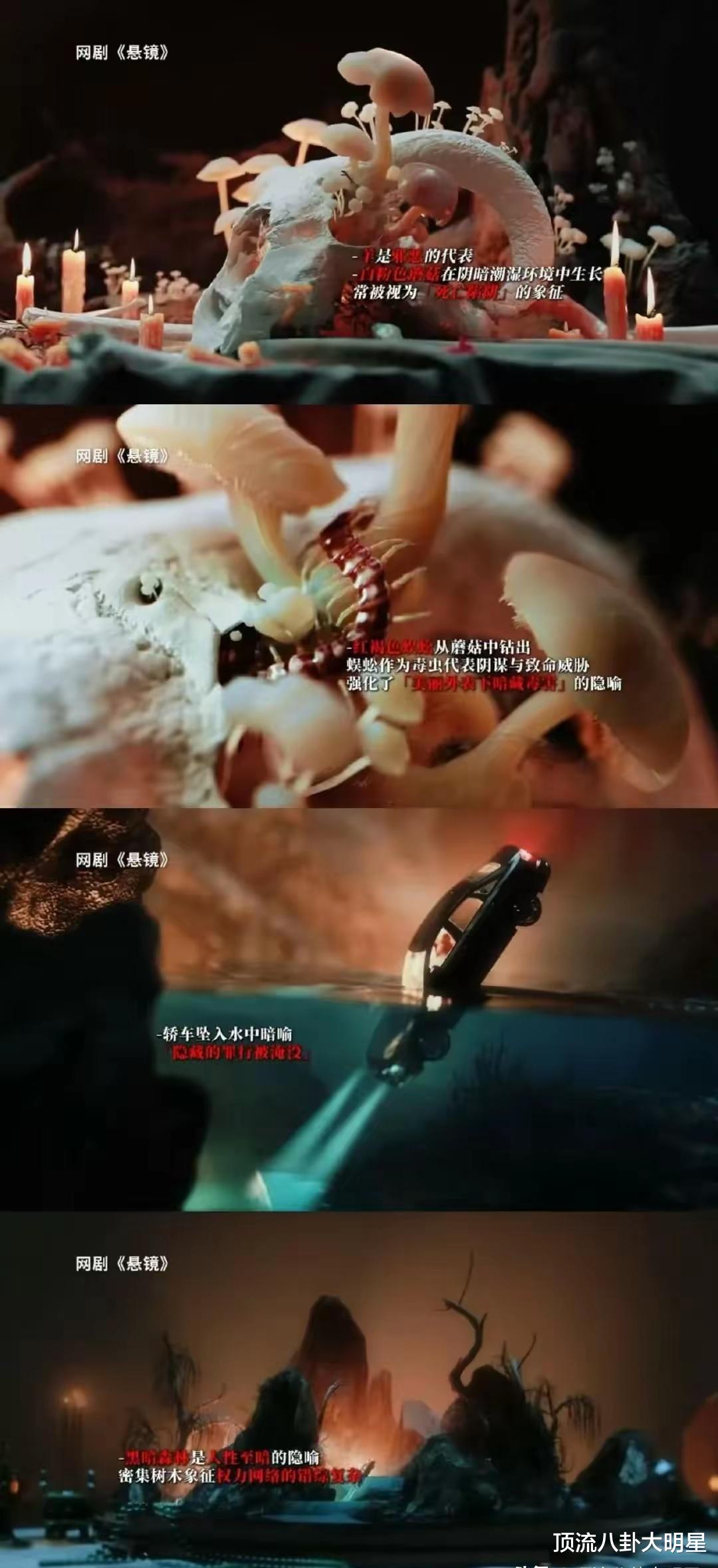 看了这么多的悬疑剧,就唯独是这部剧的片头没跳过!骷髅头、毒蘑菇、毒蜈蚣、轿车入水、飞蛾破茧,展示中式美学与玄学奇幻神秘的探案世界,剧中将北斗七星摆尸、古国长生仪式等玄学元素融入案件,被赞“中式恐怖氛围拉满”“比纯科学破案更带感”。