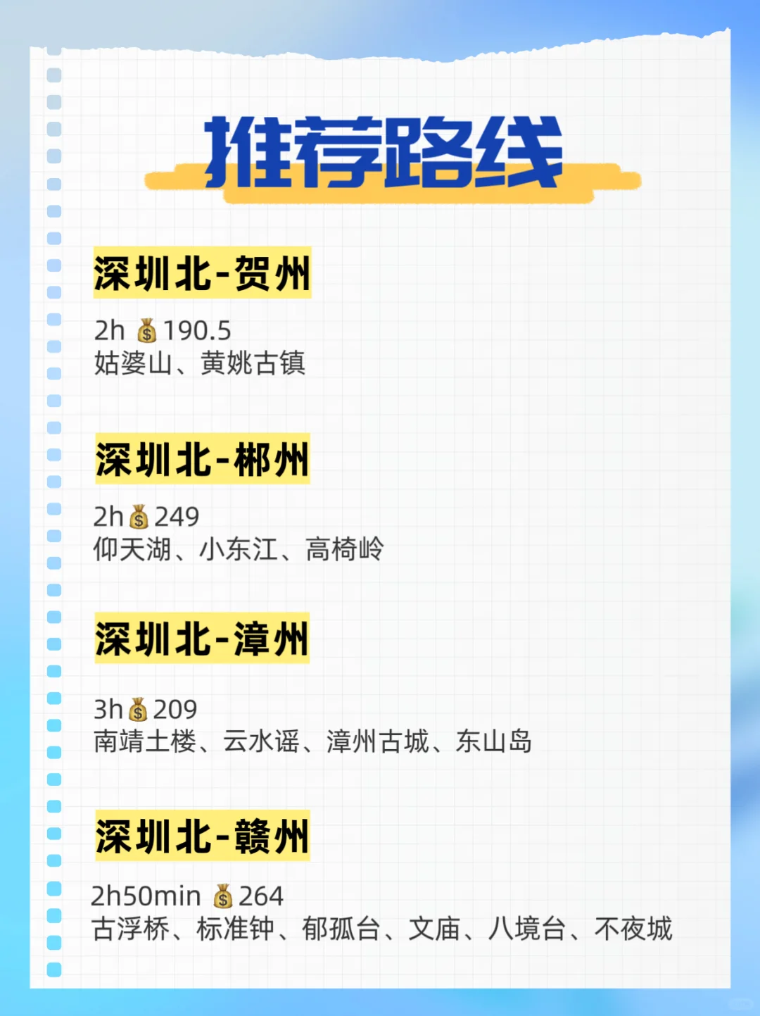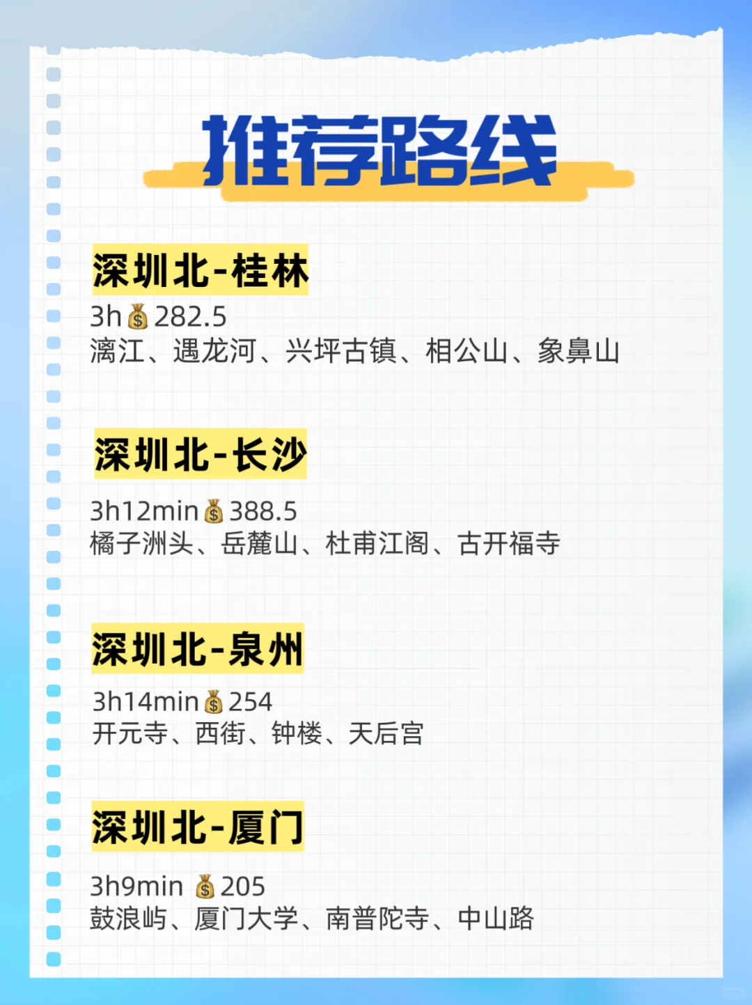 整理深圳周边高铁3小时以内可以去的地方,人生不过三万天,每天都是新的一天,周末出去玩吧🤣🤣