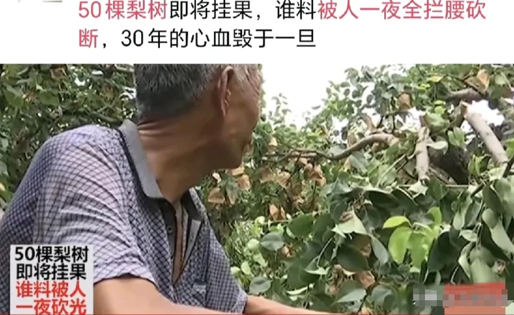 一夜之间,50棵梨树全部被人锯断,袁大爷眼前一黑,差点栽倒在地。