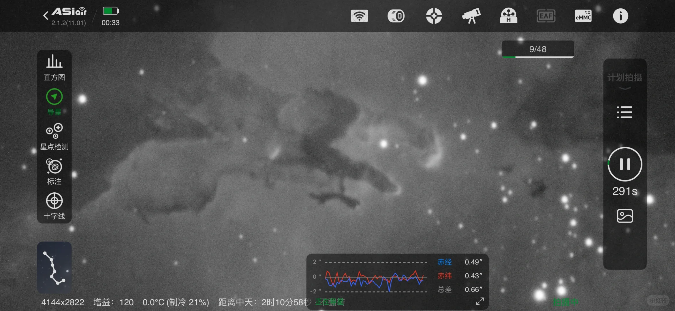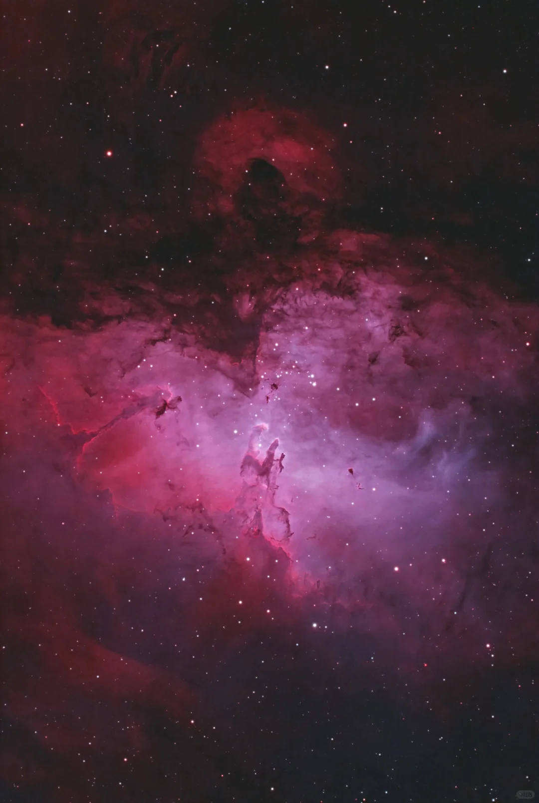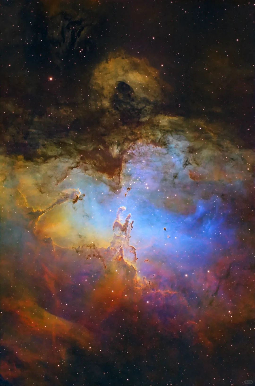 “创生之柱”位于距地球6500光年的M16鹰星云内,被评为哈勃太空望远镜拍到的最美10张照片之一。 我用8英寸施卡望远镜拍摄到了这片伟大震撼的星云细节。拍摄设备:星特朗C8hd 0.7X减焦镜,EM31pro,zwo asi294mm pro。