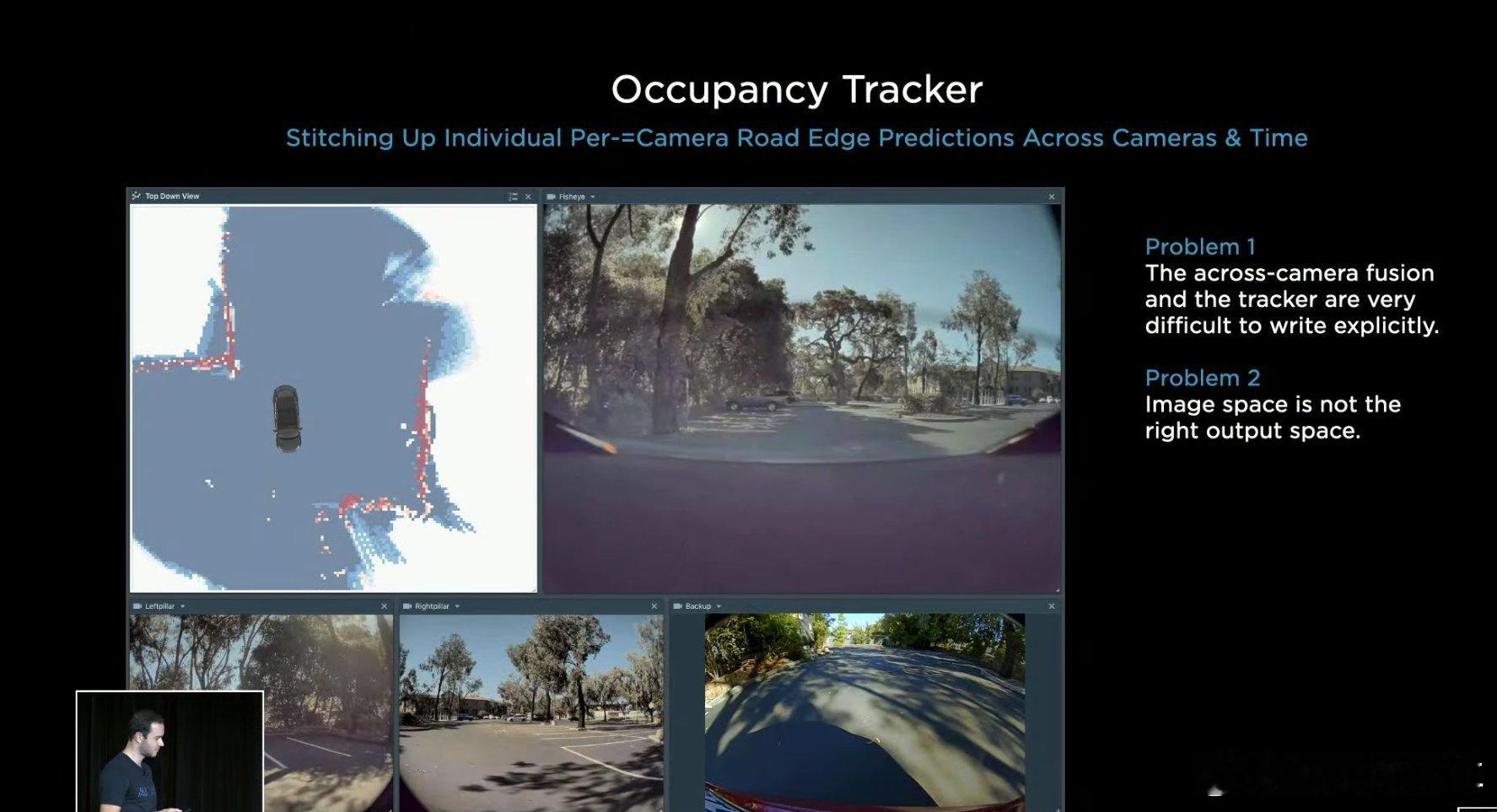 - 2022 年的 FSD Beta 的一大关键词是Occupancy Network「占用网络」,来自第二届 AI Day,通过将车辆周围的图像数据转换为三维体素表示,增强了感知模块的精度和环境理解能力,并与前面量产的HydraNet 技术做结合,兼具2D、3D识别能力;应用版本为同年底的 Beta v10.69 版本;