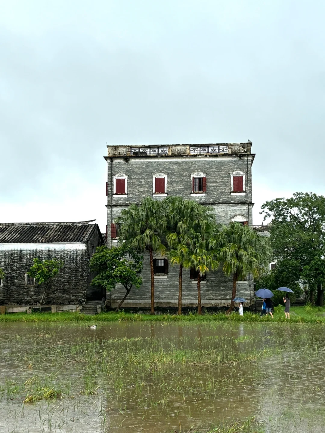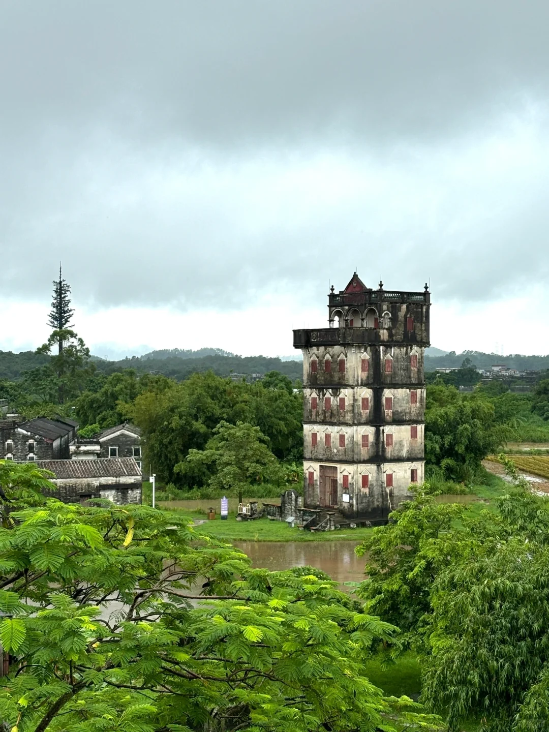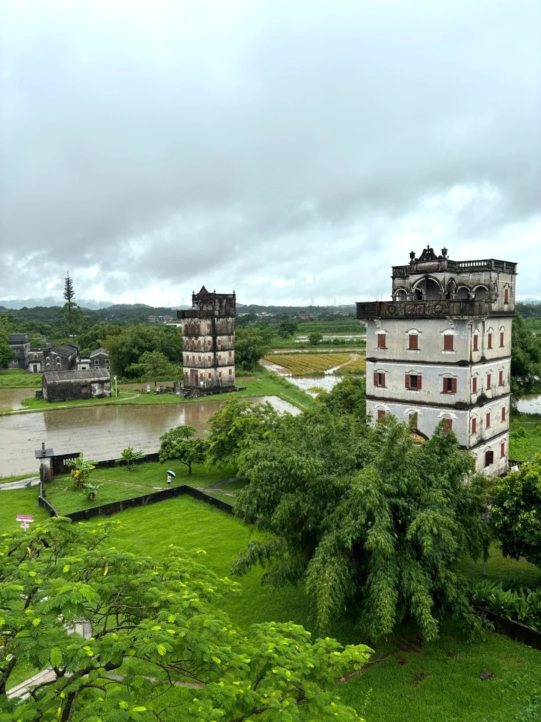 被列为世界遗产,中西合璧的碉楼,雨天的碉楼被稻田和荷塘环绕,宁静又很有氛围