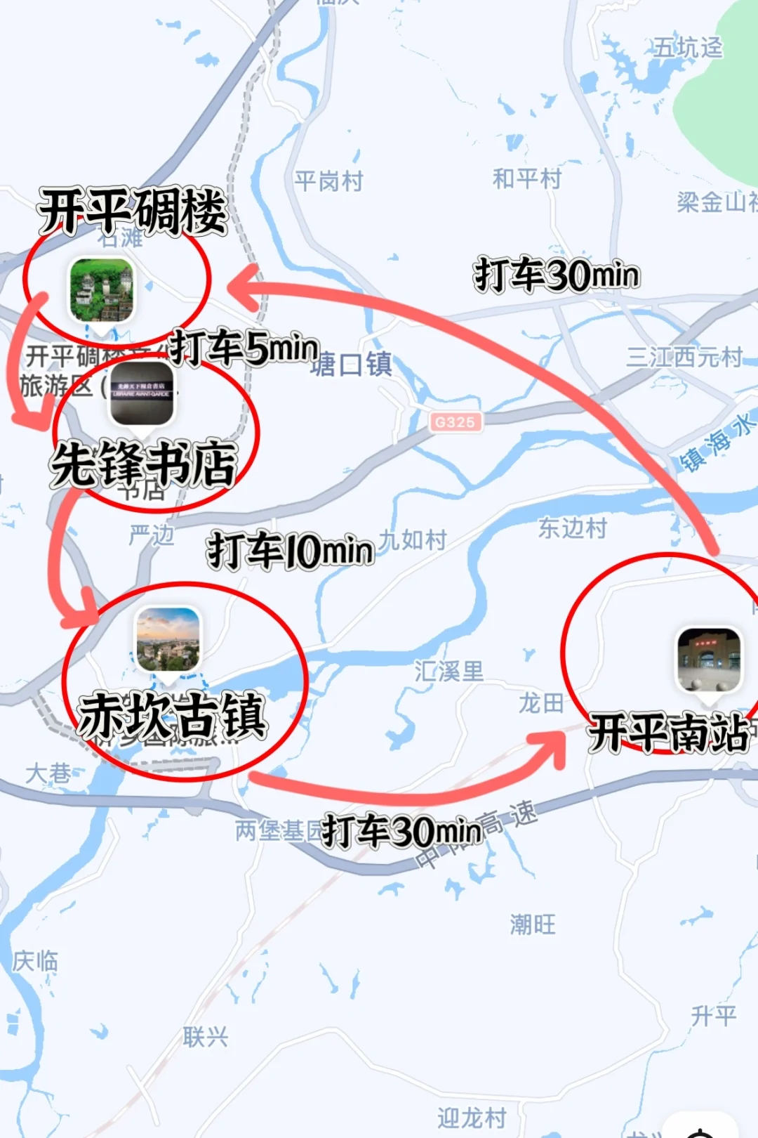 ▪️9:43 江门高铁站到开平南,打车半小时到开平碉楼