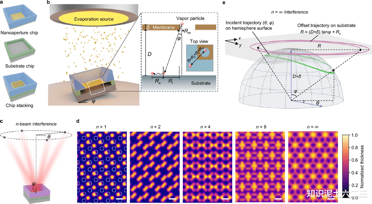 MBHL技术的原理有点像光的干涉,不过这里是分子束在搞“小动作”。先准备两个芯片,一个上面有纳米孔;另一个是基板芯片。把它们垂直叠放好,中间的距离由光刻胶的厚度来精确控制。然后把这个芯片堆放在蒸发源上面,让蒸发的材料分子束穿过纳米孔,在基板上形成图案。