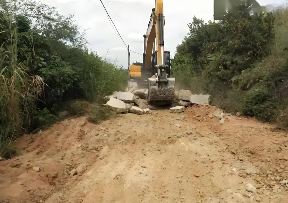 他聘请来了施工队来修建道路,推土机轰轰隆隆,一路嘶鸣着,把小路两边的土推平展,夯实,一条大路逐渐成形。