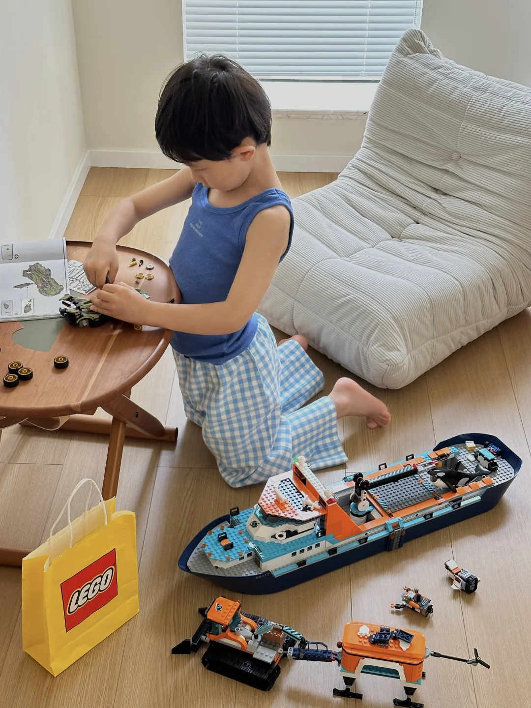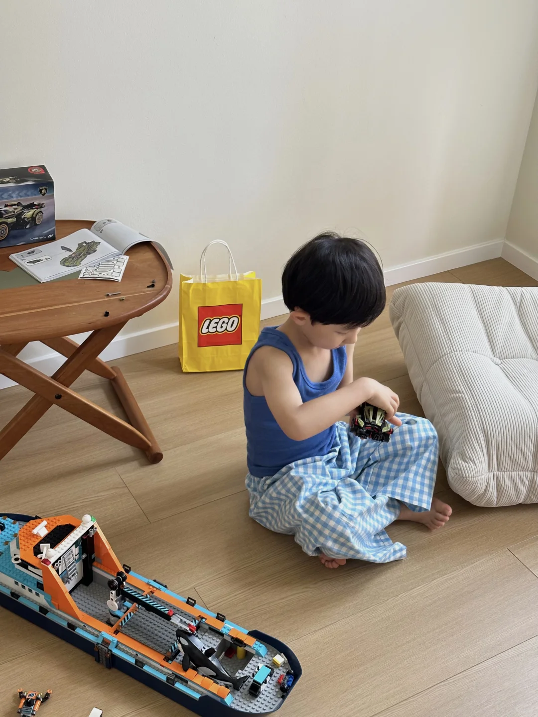 是荷包💰。 一天两盒的节奏, 上午姥姥带去店里买了辆兰博基尼, 二十来分钟拼完意犹未尽,刚才又去取包裹了… 这个月买玩具份额已透支,再给他买就是小🐶!