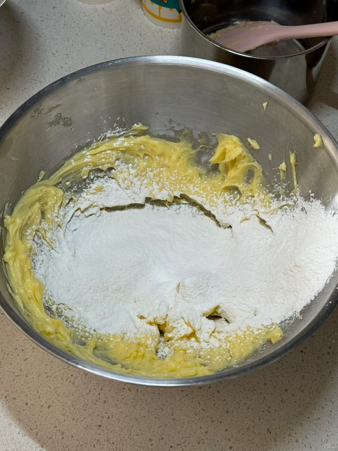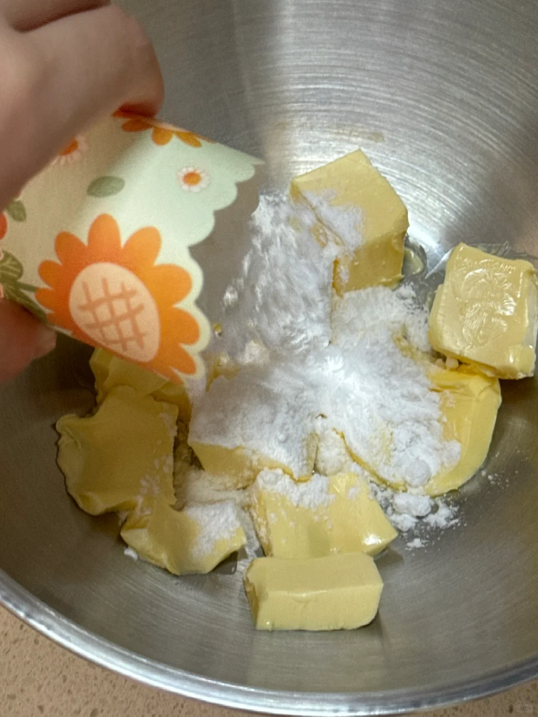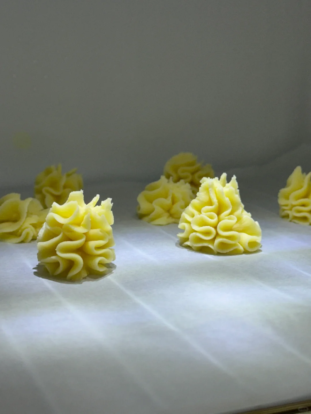 🌷食材:黄油110g,糖粉25g,食盐1g,玉米淀粉55g,低筋面粉45g,高筋面粉40g。 🌷做法:1.提前软化黄油,糖粉、盐与黄油用打蛋器打发均匀。 2.筛入玉米淀粉(玉米淀粉是曲奇酥的关键)打发至体积发白,筛入高筋面粉和低筋面粉,用刮刀压拌均匀,呈细腻的面糊糊。 3.用8齿的裱花嘴,挤入烤盘,烤前需要冷藏半小时,再预热好烤箱,140度烘烤30分钟(第一次挤,挤的不是很完美,之后要多加练习,但这个配方真的好好吃!!!) 🌷经典原味是真的不错,快去试试吧!