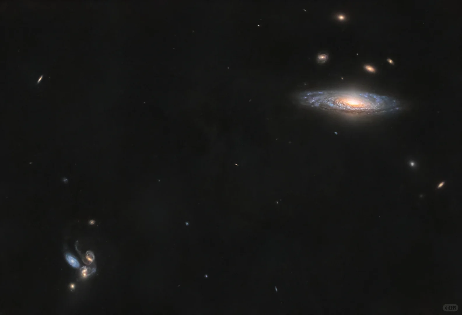 鹿舔星系NGC7331和史蒂芬五重奏星系群,NGC7331距离地球5000万光年,其外观与银河系相似。这片区域一直是我很喜欢的目标,今年夏天上海连续的晴天,累计9个多小时曝光,终于完成了这一目标拍摄。