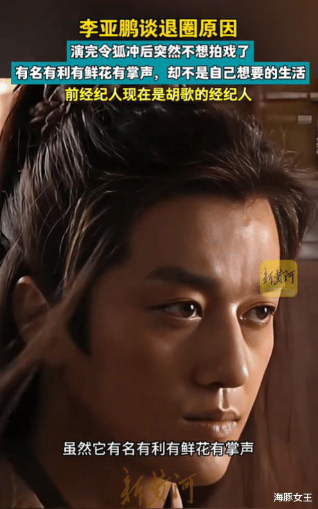 李亚鹏演完令狐冲这个角色后,在事业巅峰和经纪人坦言,自己决定退圈,李亚鹏之前的经纪人是胡歌现在的经纪人。