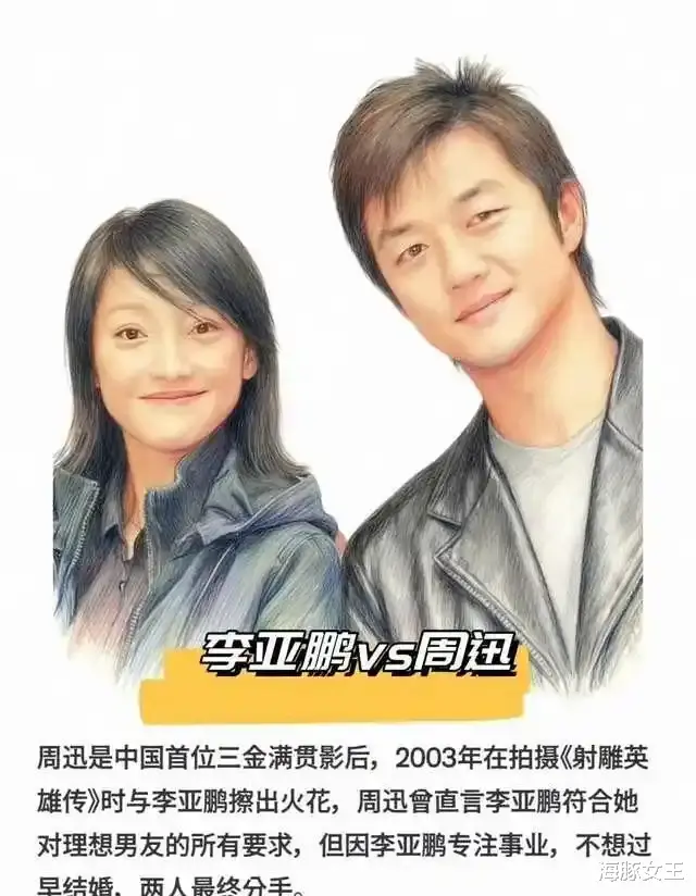 周迅曾说李亚鹏满足了我对男人所有的幻想,周迅有结婚的想法,但是李亚鹏想拼事业,两人最终于2003年分手。