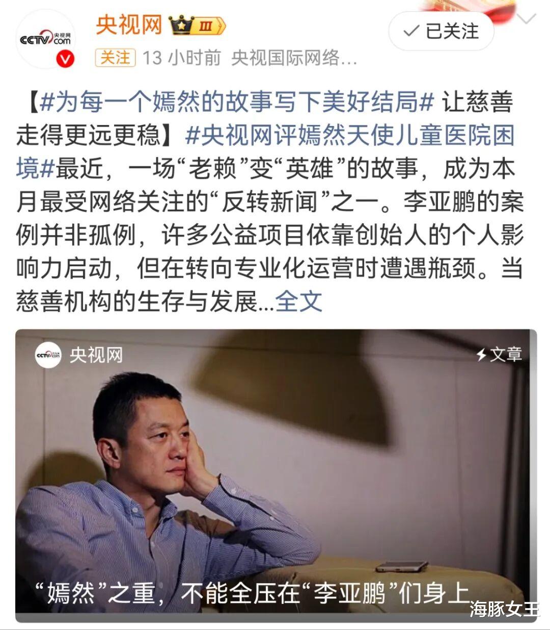 央视点评李亚鹏,应该让慈善走的更远更稳,但是“嫣然”之重,不能压在“李亚鹏”身上。