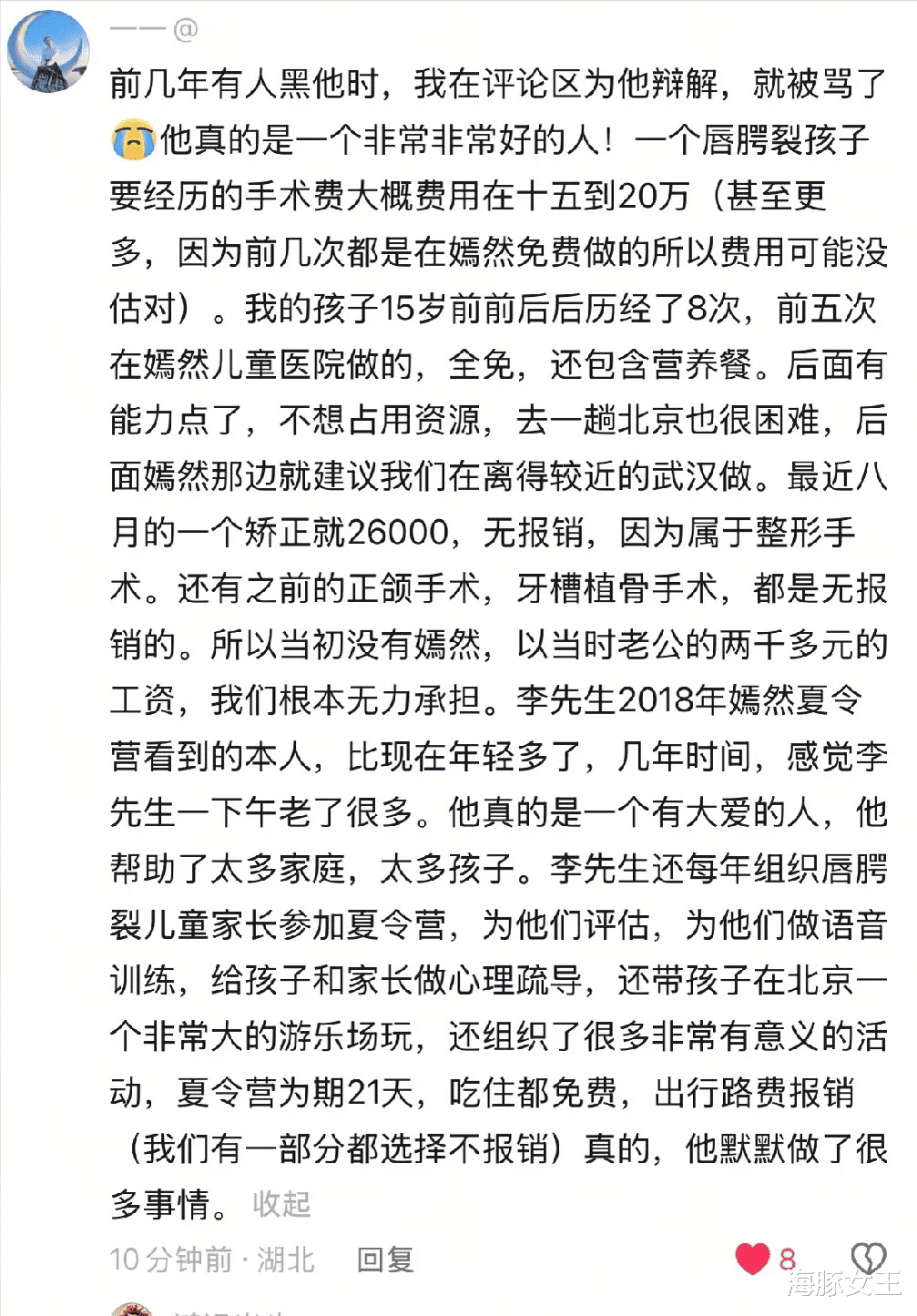 接受过李亚鹏帮助的唇腭裂患者,纷纷发声,力挺恩公李亚鹏。