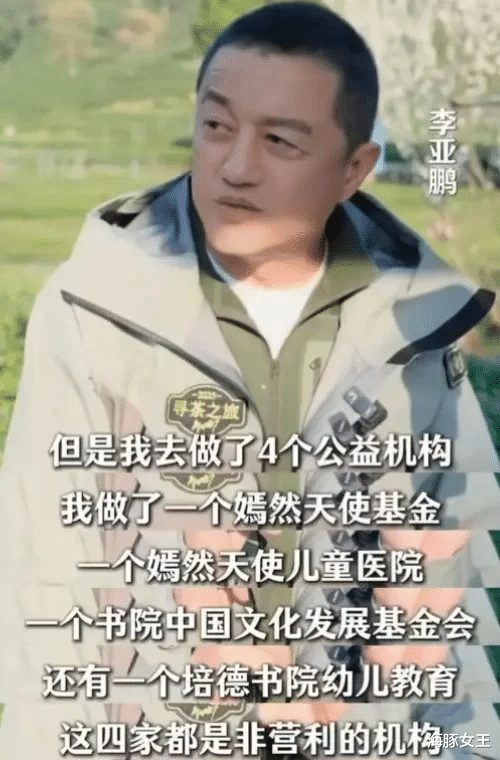 2006年,李亚鹏成立了嫣然天使基金,接着又成立了嫣然天使儿童医院,书院中国文化发展基金会,培德书院幼儿教育,这4个都是非盈利性机构。